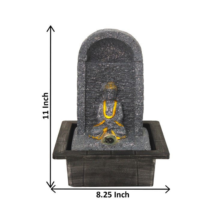 Buddha Sitting on Pahad tabletop small indoor water fountain With Led Light - sa...