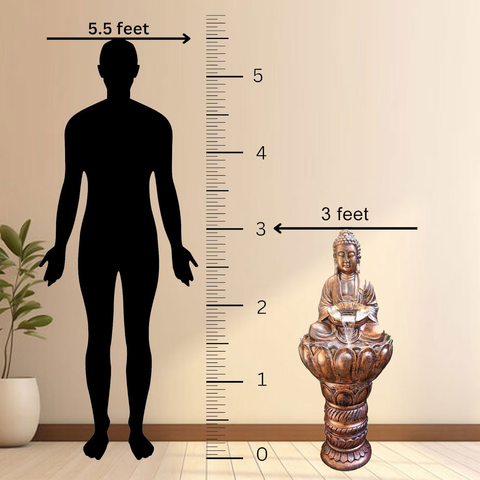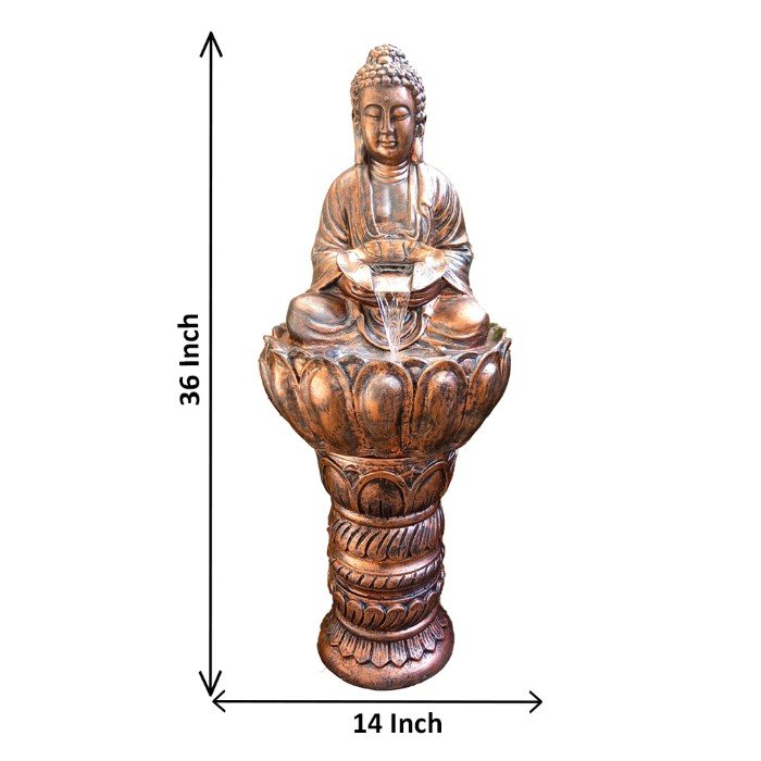 Big Lotus Buddha indoor outdoor FRP Fiber water fountain is a best showpiece for home decor. This indoor water fountain not only looks great but also brings positivity to your space. Sound effect of water fountain helps create a positive and harmonious environment. As a home decorative water fountain, it adds a touch of elegance and peace to your living space. This Big Lotus Buddha also makes for a wonderful decorative gift item for home decoration, ideal for housewarmings or special occasions. An indoor water fountain is best decoration and thoughtful gift. Whether placed in a living room, home, office, showroom, restaurant, hotel and wedding hall, the gentle sound of flowing water can enhance the beauty of area. As a gift, an indoor water fountain is not only visually appealing but also symbolizes harmony and balance. Water fountain is best ideal decorative gift choice as birthday, housewarming, office / shop inauguration, New Year, Wedding, Corporate Diwali gifts or any occasion.