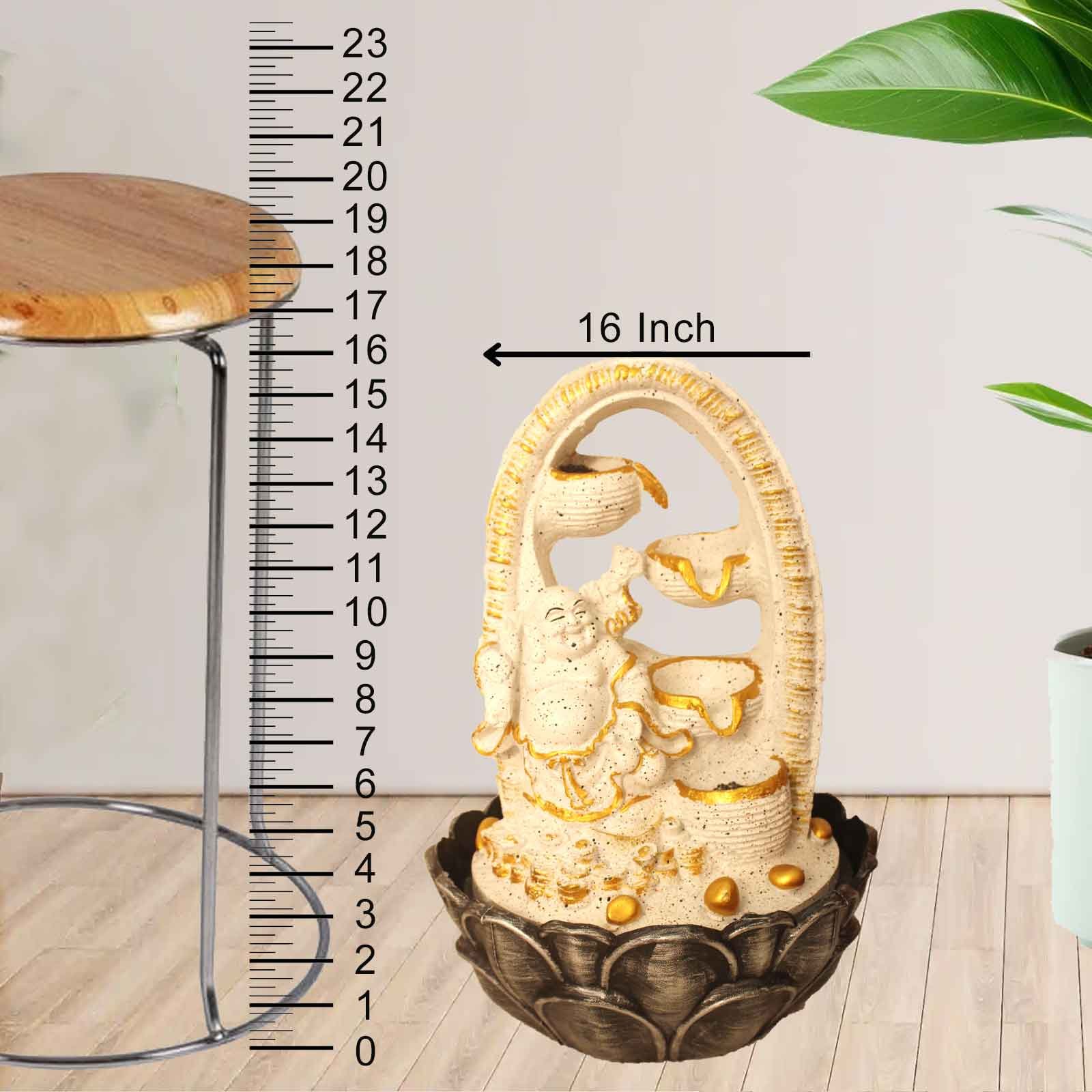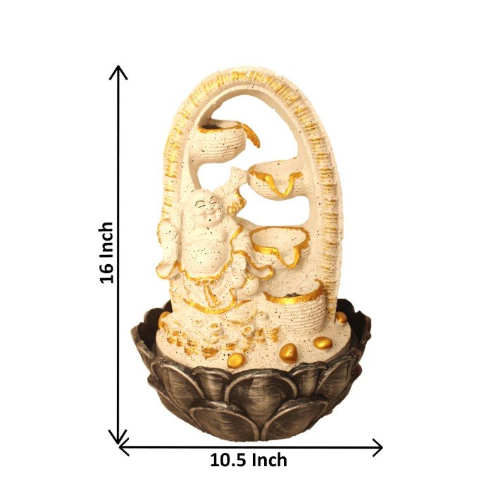 Laughing Buddha indoor water fountain is a beautiful showpiece for home decor. This indoor water fountain not only looks great but also brings positivity to your space. Sound effect of water fountain helps create a positive and harmonious environment. As a home decorative water fountain, it adds a touch of elegance and peace to your living space. This Laughing Buddha also makes for a wonderful decorative gift item for home decoration, ideal for housewarmings or special occasions. An indoor water fountain is best decoration and thoughtful gift. Whether placed in a living room, home, office, showroom, restaurant, hotel and wedding hall, the gentle sound of flowing water can enhance the beauty of area. As a gift, an indoor water fountain is not only visually appealing but also symbolizes harmony and balance. Water fountain is best ideal decorative gift choice as birthday, housewarming, office / shop inauguration, New Year, Wedding, Corporate Diwali gifts or any occasion.
