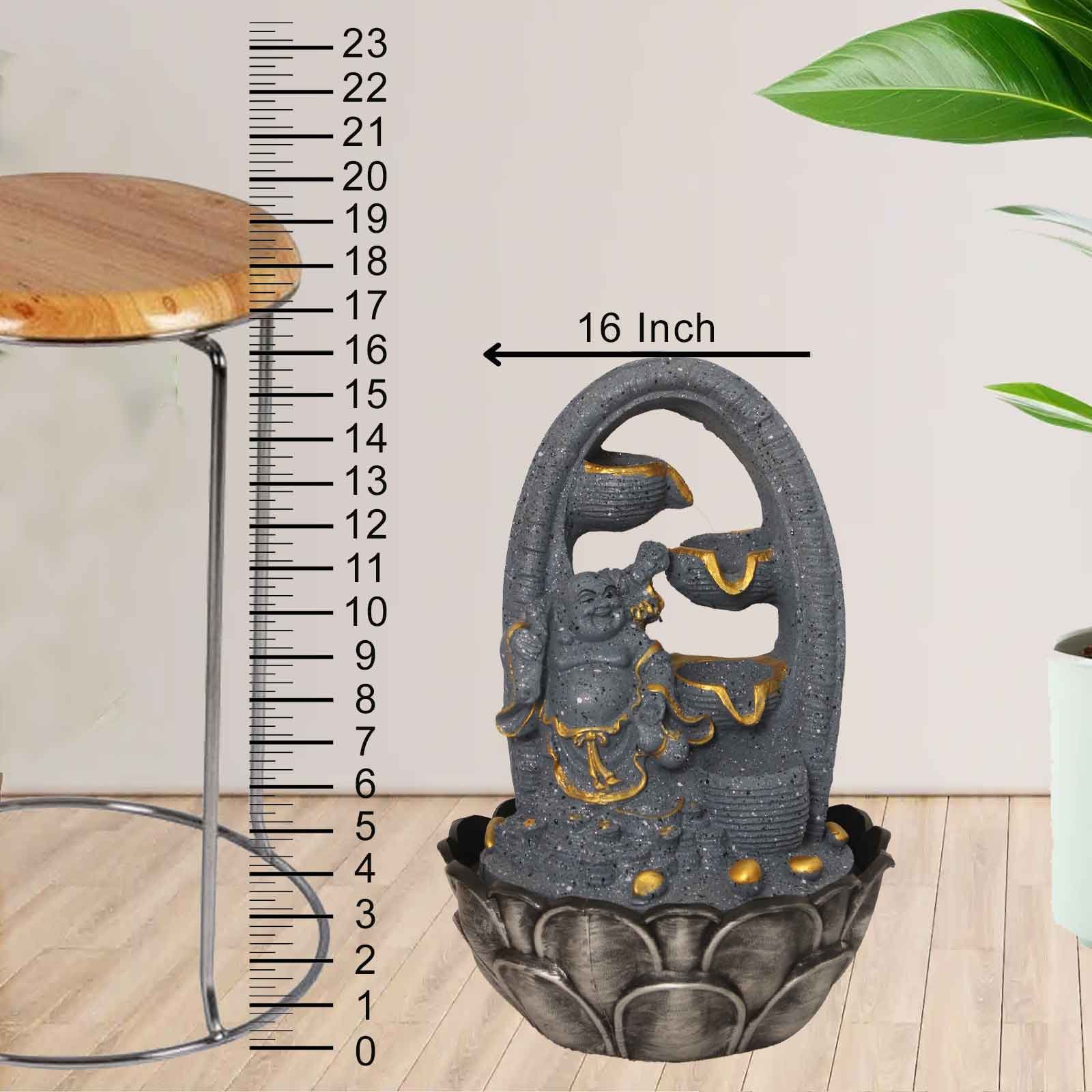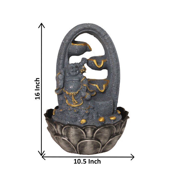 Laughing Buddha indoor water fountain is a beautiful showpiece for home decor. This indoor water fountain not only looks great but also brings positivity to your space. Sound effect of water fountain helps create a positive and harmonious environment. As a home decorative water fountain, it adds a touch of elegance and peace to your living space. This Laughing Buddha also makes for a wonderful decorative gift item for home decoration, ideal for housewarmings or special occasions. An indoor water fountain is best decoration and thoughtful gift. Whether placed in a living room, home, office, showroom, restaurant, hotel and wedding hall, the gentle sound of flowing water can enhance the beauty of area. As a gift, an indoor water fountain is not only visually appealing but also symbolizes harmony and balance. Water fountain is best ideal decorative gift choice as birthday, housewarming, office / shop inauguration, New Year, Wedding, Corporate Diwali gifts or any occasion.