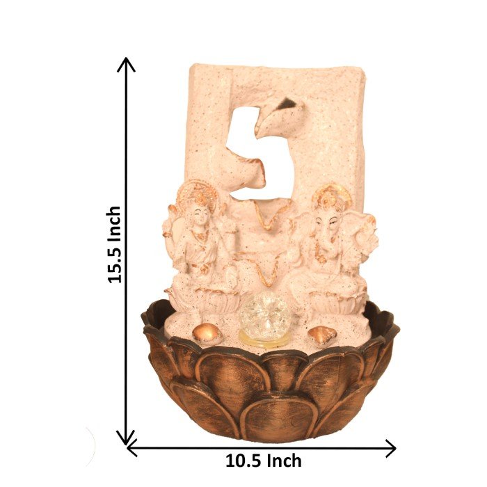 Laxmi Ganesha small size water fountain for home With Led Light & Crystal Ball - sandstone Finish 39 cm G57GX0195PCDMX