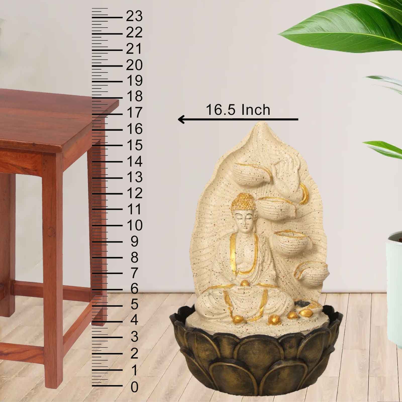 Leaf Buddha Vastu Showpiece water fountain for desk With Led Light - sandstone Finish 42 cm G57GX0039IGDMX