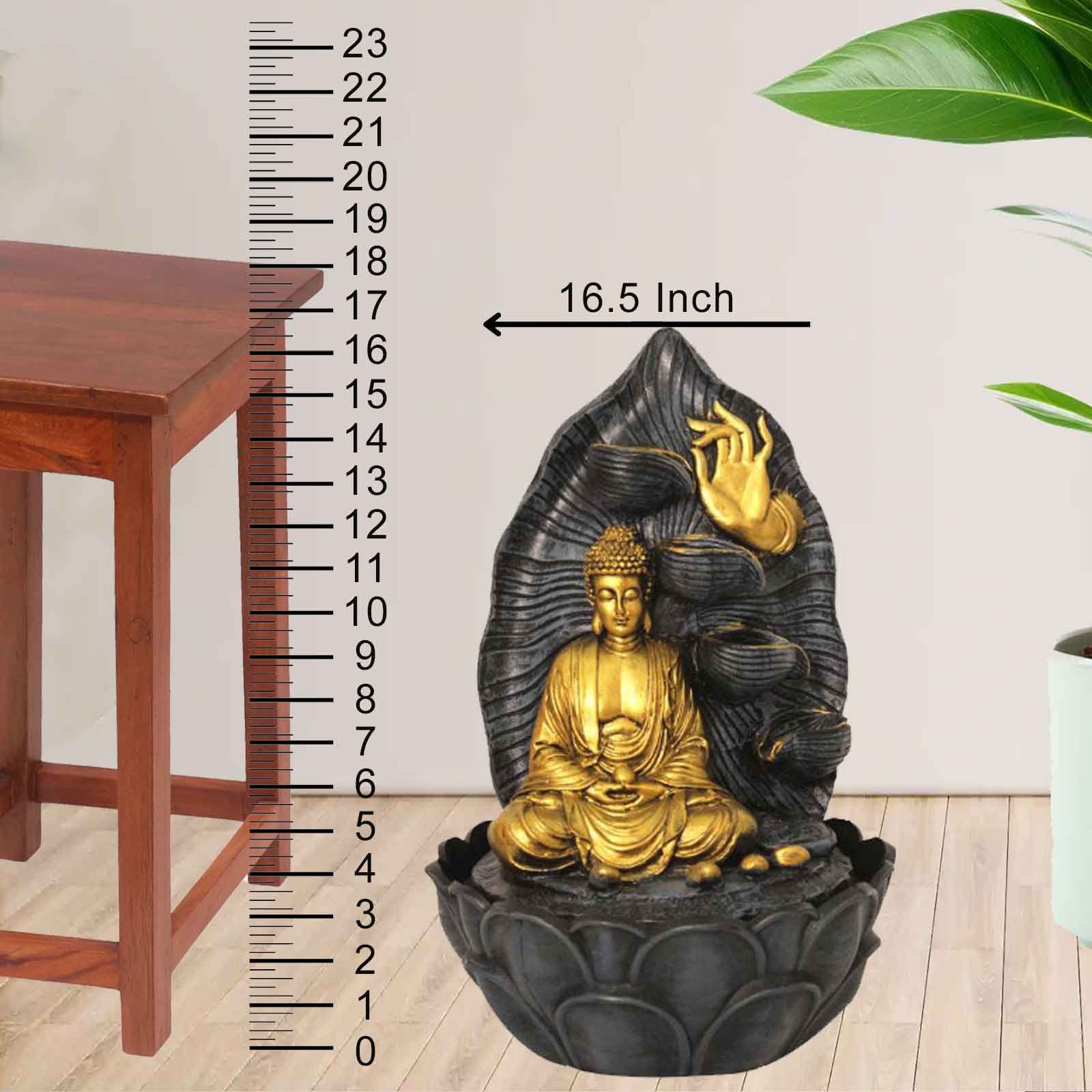 Leaf Buddha Vastu Showpiece water fountain for garden With Led Light - Metalic Antique Finish 42 cm G57GX0039FGAMX