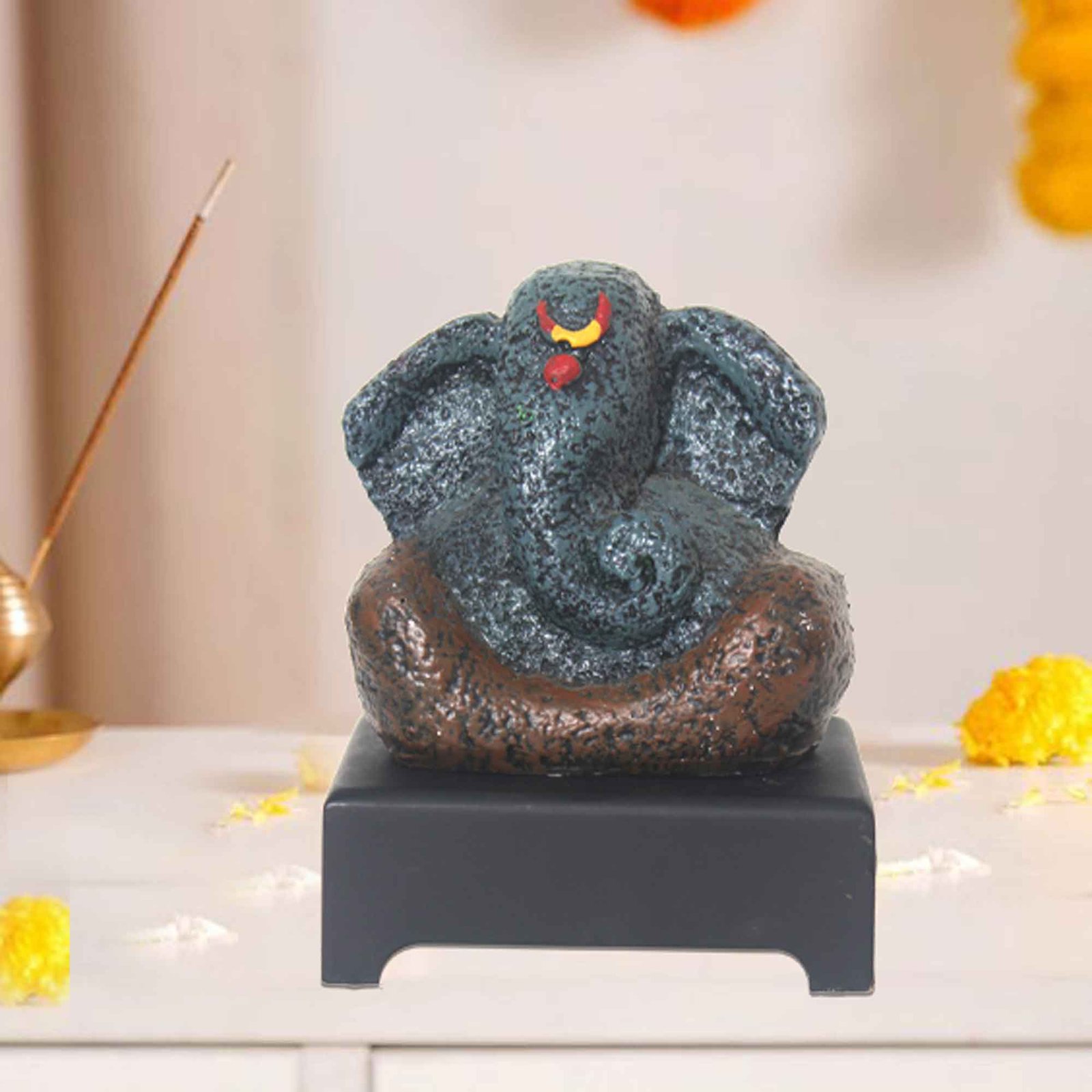 Handicraft Ganesha miniature decorative items Marble Look with Wooden Base 22 cm...