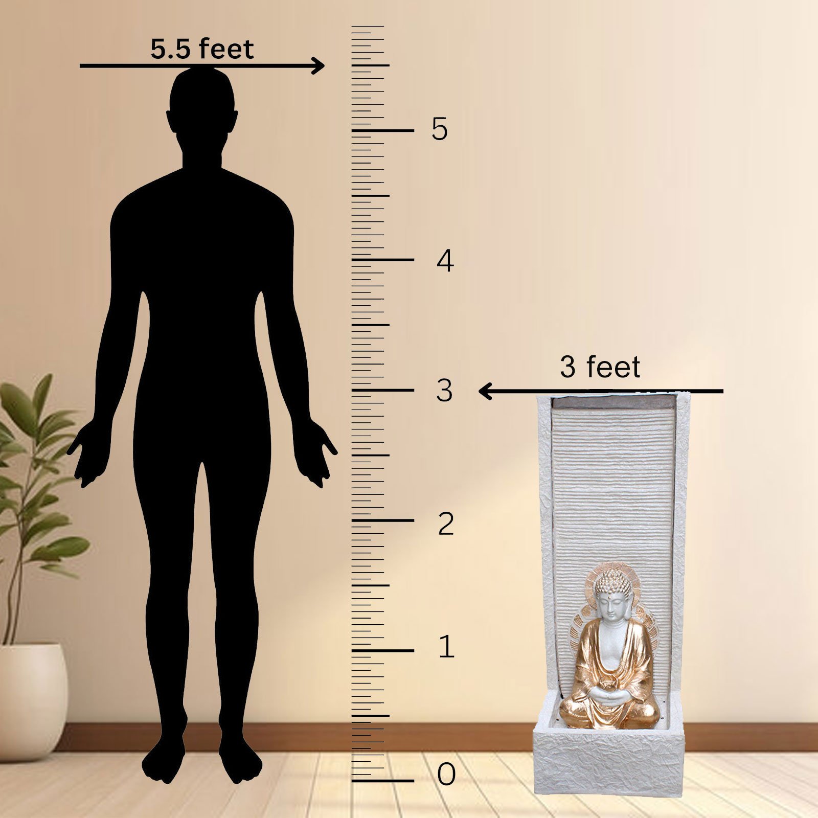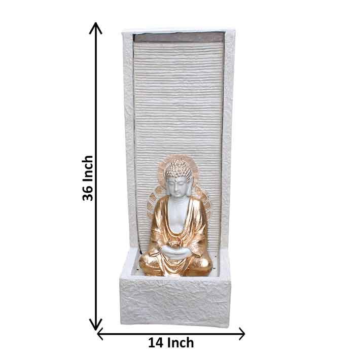 Lord Buddha indoor outdoor FRP Fiber water fountain is a beautiful showpiece for home decor. This indoor water fountain not only looks great but also brings positivity to your space. Sound effect of water fountain helps create a positive and harmonious environment. As a home decorative water fountain, it adds a touch of elegance and peace to your living space. This Lord Buddha also makes for a wonderful decorative gift item for home decoration, ideal for housewarmings or special occasions. An indoor water fountain is best decoration and thoughtful gift. Whether placed in a living room, home, office, showroom, restaurant, hotel and wedding hall, the gentle sound of flowing water can enhance the beauty of area. As a gift, an indoor water fountain is not only visually appealing but also symbolizes harmony and balance. Water fountain is best ideal decorative gift choice as birthday, housewarming, office / shop inauguration, New Year, Wedding, Corporate Diwali gifts or any occasion.