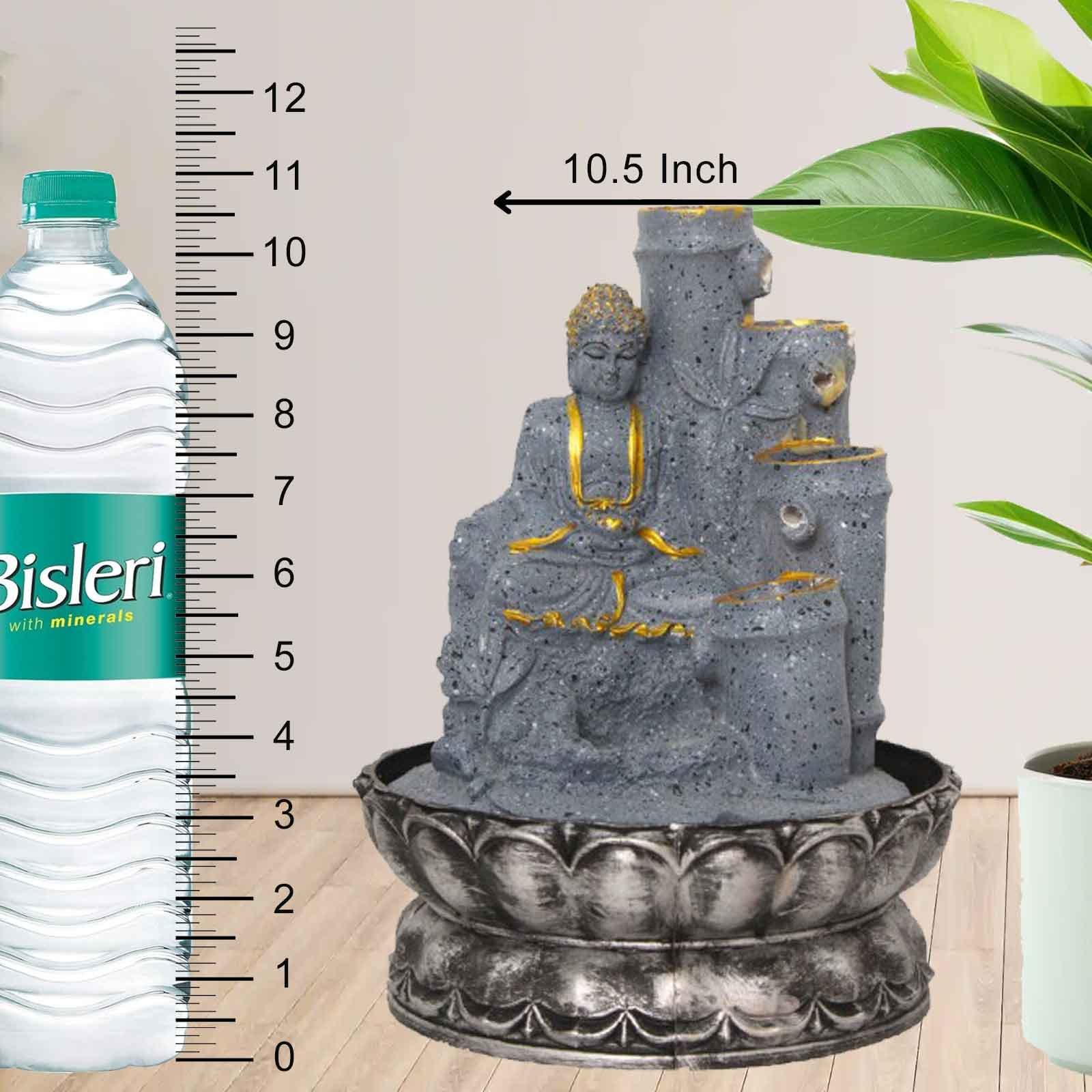 Dhyan Buddha mini water fountain for home With Led Light - sandstone Finish 25 c...