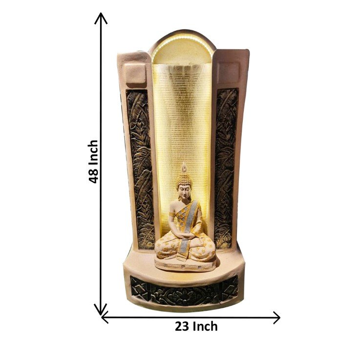 Lord Buddha indoor outdoor FRP Fiber water fountain is a beautiful showpiece for home decor. This indoor water fountain not only looks great but also brings positivity to your space. Sound effect of water fountain helps create a positive and harmonious environment. As a home decorative water fountain, it adds a touch of elegance and peace to your living space. This Lord Buddha also makes for a wonderful decorative gift item for home decoration, ideal for housewarmings or special occasions. An indoor water fountain is best decoration and thoughtful gift. Whether placed in a living room, home, office, showroom, restaurant, hotel and wedding hall, the gentle sound of flowing water can enhance the beauty of area. As a gift, an indoor water fountain is not only visually appealing but also symbolizes harmony and balance. Water fountain is best ideal decorative gift choice as birthday, housewarming, office / shop inauguration, New Year, Wedding, Corporate Diwali gifts or any occasion.