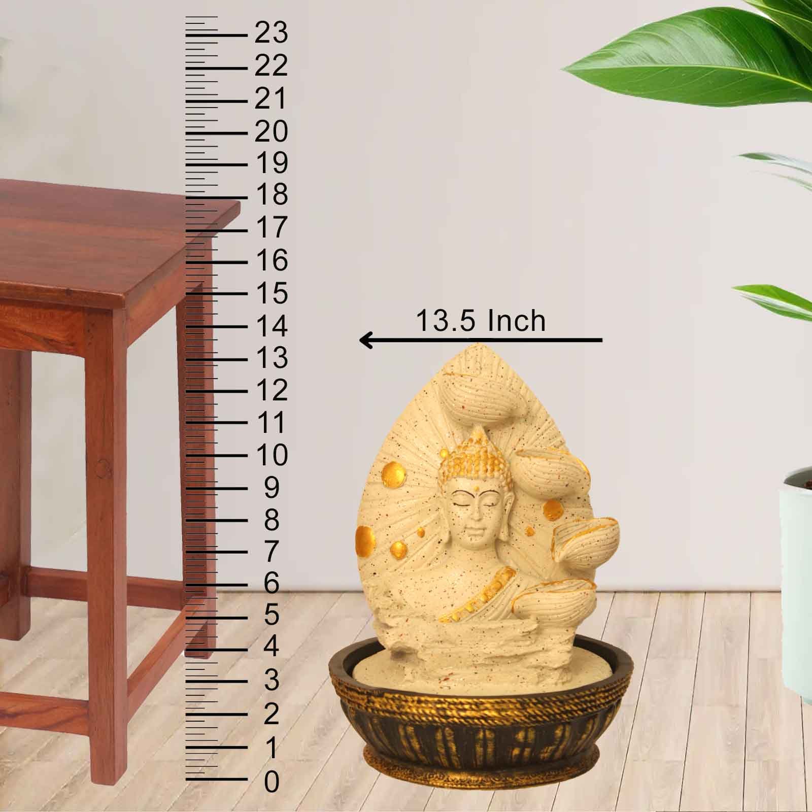 Lord Buddha indoor water fountain is a beautiful showpiece for home decor. This indoor water fountain not only looks great but also brings positivity to your space. Sound effect of water fountain helps create a positive and harmonious environment. As a home decorative water fountain, it adds a touch of elegance and peace to your living space. This Lord Buddha fountain also makes for a wonderful decorative gift item for home decoration, ideal for housewarmings or special occasions. An indoor water fountain is best decoration and thoughtful gift. Whether placed in a living room, home, office, showroom, restaurant, hotel and wedding hall, the gentle sound of flowing water can enhance the beauty of area. As a gift, an indoor water fountain is not only visually appealing but also symbolizes harmony and balance. Water fountain is best ideal decorative gift choice as birthday, housewarming, office / shop inauguration, New Year, Wedding, Corporate Diwali gifts or any occasion.