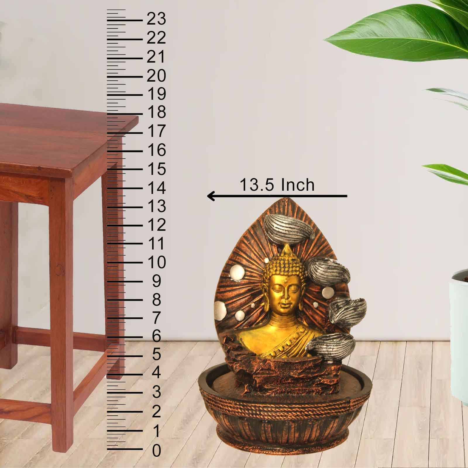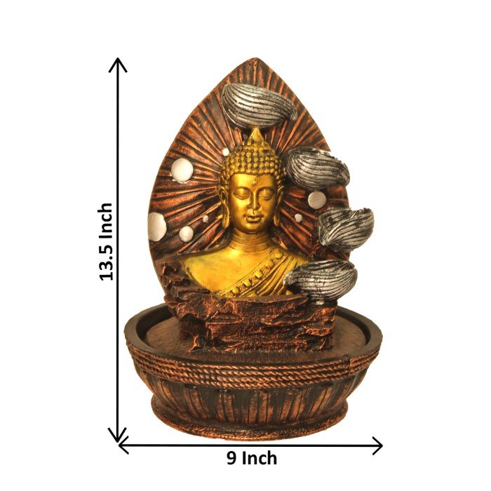 Floral Art Buddha water fountain for house With Led Light - Metalic Antique Fini...