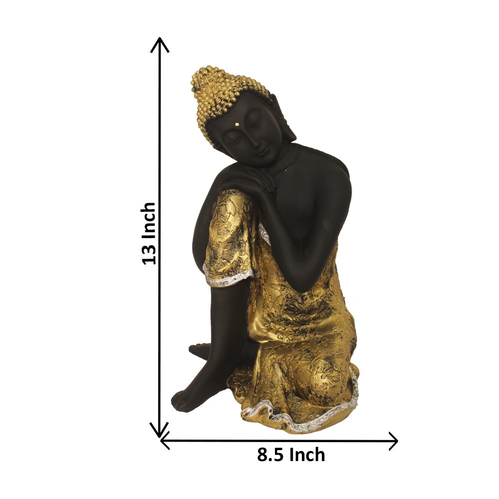 Handicrafted Resting Buddha on Knee idols for tv unit Matte Finish 27 cm G57GR10...