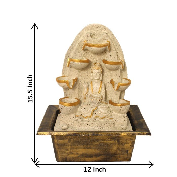 Lord Buddha indoor water fountain is a beautiful showpiece for home decor. This indoor water fountain not only looks great but also brings positivity to your space. Sound effect of water fountain helps create a positive and harmonious environment. As a home decorative water fountain, it adds a touch of elegance and peace to your living space. This Lord Buddha also makes for a wonderful decorative gift item for home decoration, ideal for housewarmings or special occasions. An indoor water fountain is best decoration and thoughtful gift. Whether placed in a living room, home, office, showroom, restaurant, hotel and wedding hall, the gentle sound of flowing water can enhance the beauty of area. As a gift, an indoor water fountain is not only visually appealing but also symbolizes harmony and balance. Water fountain is best ideal decorative gift choice as birthday, housewarming, office / shop inauguration, New Year, Wedding, Corporate Diwali gifts or any occasion.