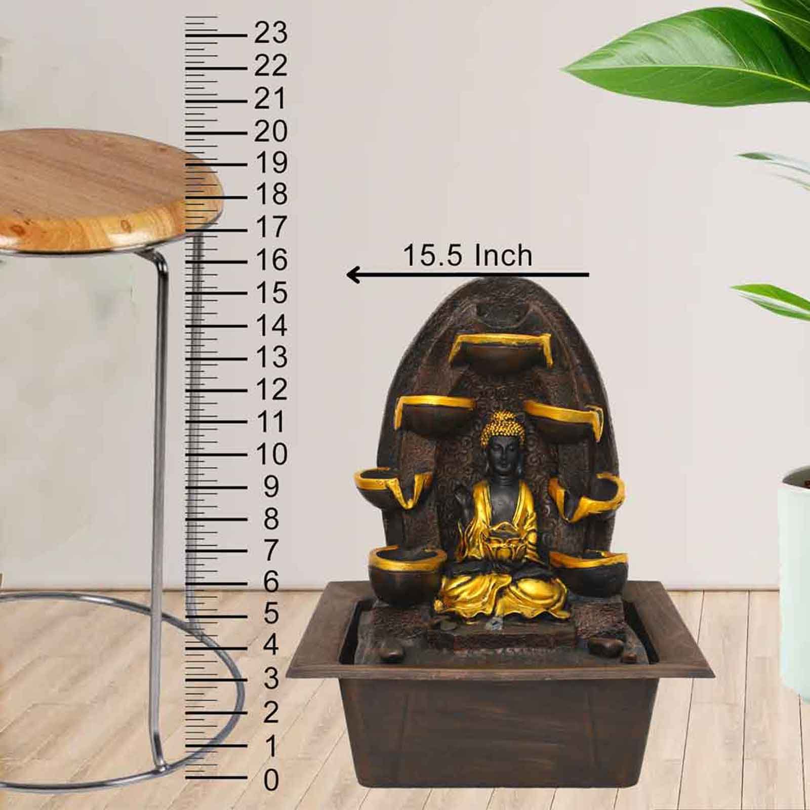 Lord Buddha small water fountain indoor With Led Light - Metalic Antique Finish 39 cm G57GX0328AGAMX