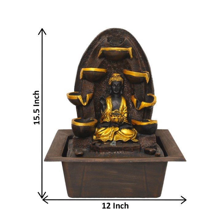 Lord Buddha indoor water fountain is a beautiful showpiece for home decor. This indoor water fountain not only looks great but also brings positivity to your space. Sound effect of water fountain helps create a positive and harmonious environment. As a home decorative water fountain, it adds a touch of elegance and peace to your living space. This Lord Buddha also makes for a wonderful decorative gift item for home decoration, ideal for housewarmings or special occasions. An indoor water fountain is best decoration and thoughtful gift. Whether placed in a living room, home, office, showroom, restaurant, hotel and wedding hall, the gentle sound of flowing water can enhance the beauty of area. As a gift, an indoor water fountain is not only visually appealing but also symbolizes harmony and balance. Water fountain is best ideal decorative gift choice as birthday, housewarming, office / shop inauguration, New Year, Wedding, Corporate Diwali gifts or any occasion.