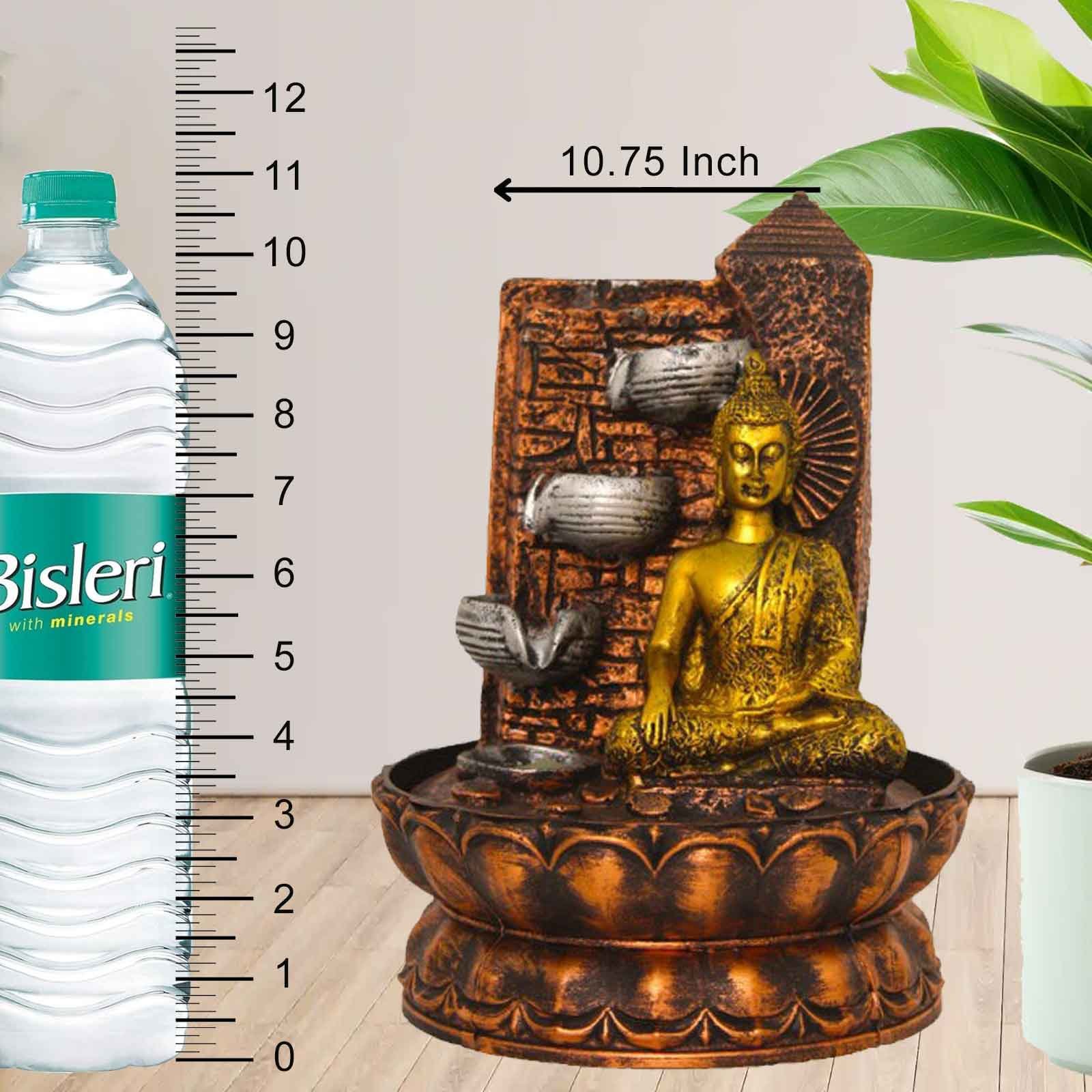 Shower Buddha fountain showpiece With Led Light - Metalic Antique Finish 41 cm G...