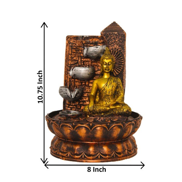 Meditation Buddha waterfall showpiece for home With Led Light - Metalic Antique ...