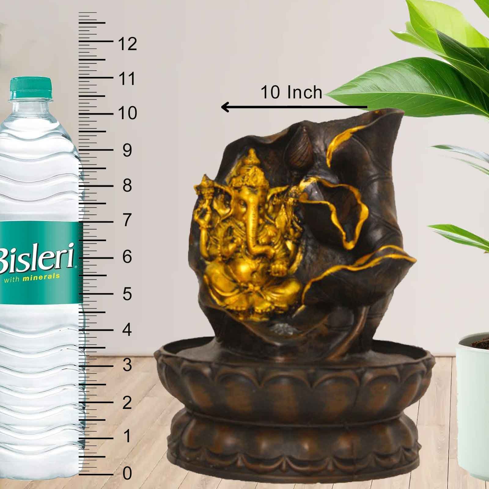Lord Ganesha with Lotus Shaped small water fountain for living room With Led Light - Metalic Antique Finish 25 cm G57GX0487AGAMX