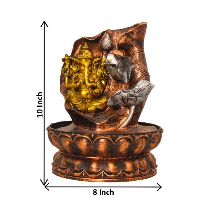 Deepak Ganesh water fountain for indoor use With Led Light - Metalic Antique Fin...