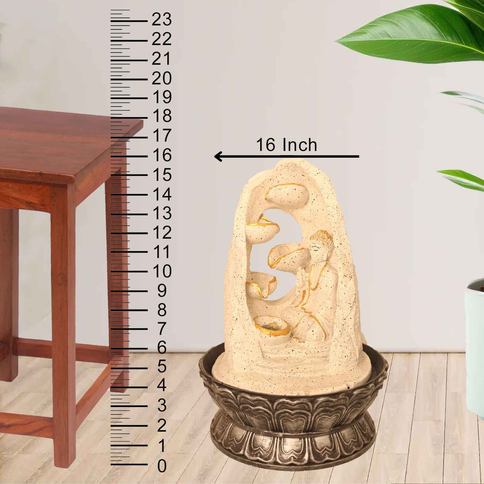Lord Gautam Buddha fountain for terrace garden With Led Light - sandstone Finish 41 cm G57GX0528WGDMX