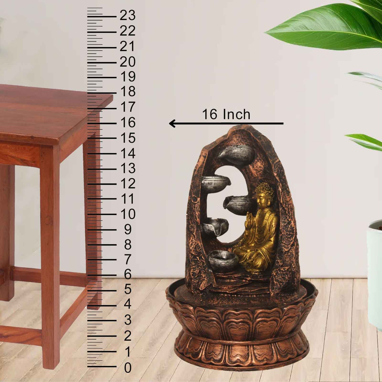 Lord Gautam Buddha indoor fountain for home With Led Light - Metalic Antique Finish 41 cm G57GX0528MGAMX