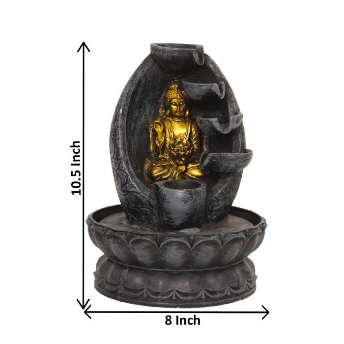 Lord Gautam Buddha waterfall showpiece With Led Light - Metalic Antique Finish 27 cm G57GX0451FGAMX