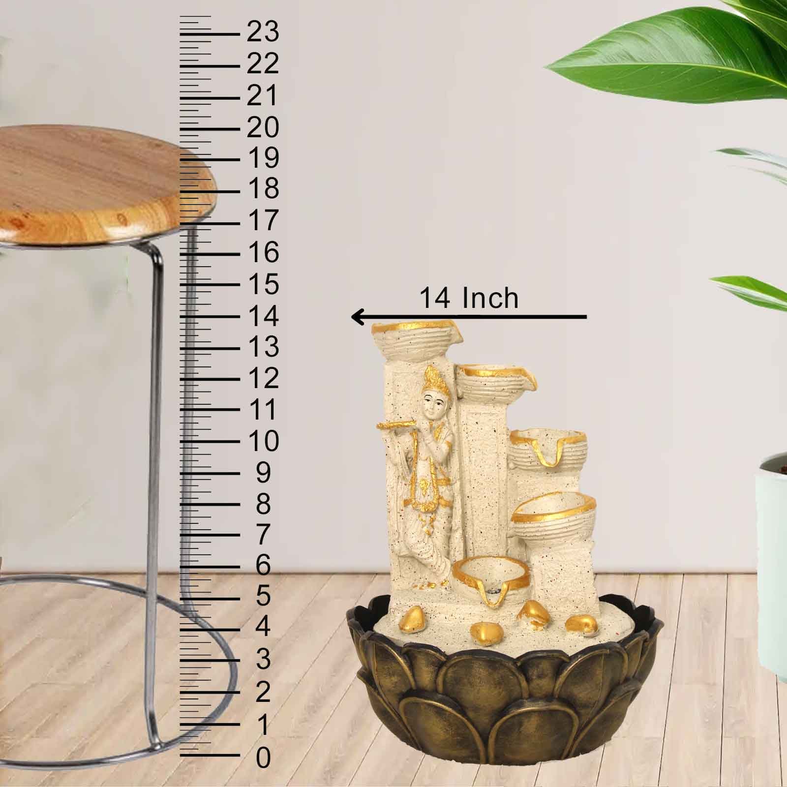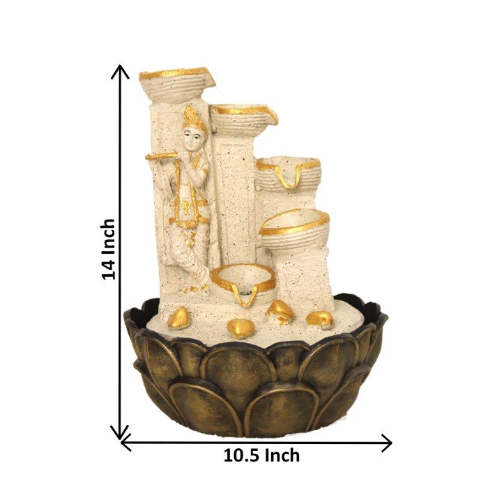 Lord Krishna indoor water fountain is a beautiful showpiece for home decor. This indoor water fountain not only looks great but also brings positivity to your space. Sound effect of water fountain helps create a positive and harmonious environment. As a home decorative water fountain, it adds a touch of elegance and peace to your living space. This Lord Krishna also makes for a wonderful decorative gift item for home decoration, ideal for housewarmings or special occasions. An indoor water fountain is best decoration and thoughtful gift. Whether placed in a living room, home, office, showroom, restaurant, hotel and wedding hall, the gentle sound of flowing water can enhance the beauty of area. As a gift, an indoor water fountain is not only visually appealing but also symbolizes harmony and balance. Water fountain is best ideal decorative gift choice as birthday, housewarming, office / shop inauguration, New Year, Wedding, Corporate Diwali gifts or any occasion.