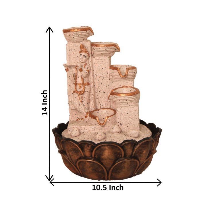 Lord Krishna indoor water fountain is a beautiful showpiece for home decor. This indoor water fountain not only looks great but also brings positivity to your space. Sound effect of water fountain helps create a positive and harmonious environment. As a home decorative water fountain, it adds a touch of elegance and peace to your living space. This Lord Krishna also makes for a wonderful decorative gift item for home decoration, ideal for housewarmings or special occasions. An indoor water fountain is best decoration and thoughtful gift. Whether placed in a living room, home, office, showroom, restaurant, hotel and wedding hall, the gentle sound of flowing water can enhance the beauty of area. As a gift, an indoor water fountain is not only visually appealing but also symbolizes harmony and balance. Water fountain is best ideal decorative gift choice as birthday, housewarming, office / shop inauguration, New Year, Wedding, Corporate Diwali gifts or any occasion.
