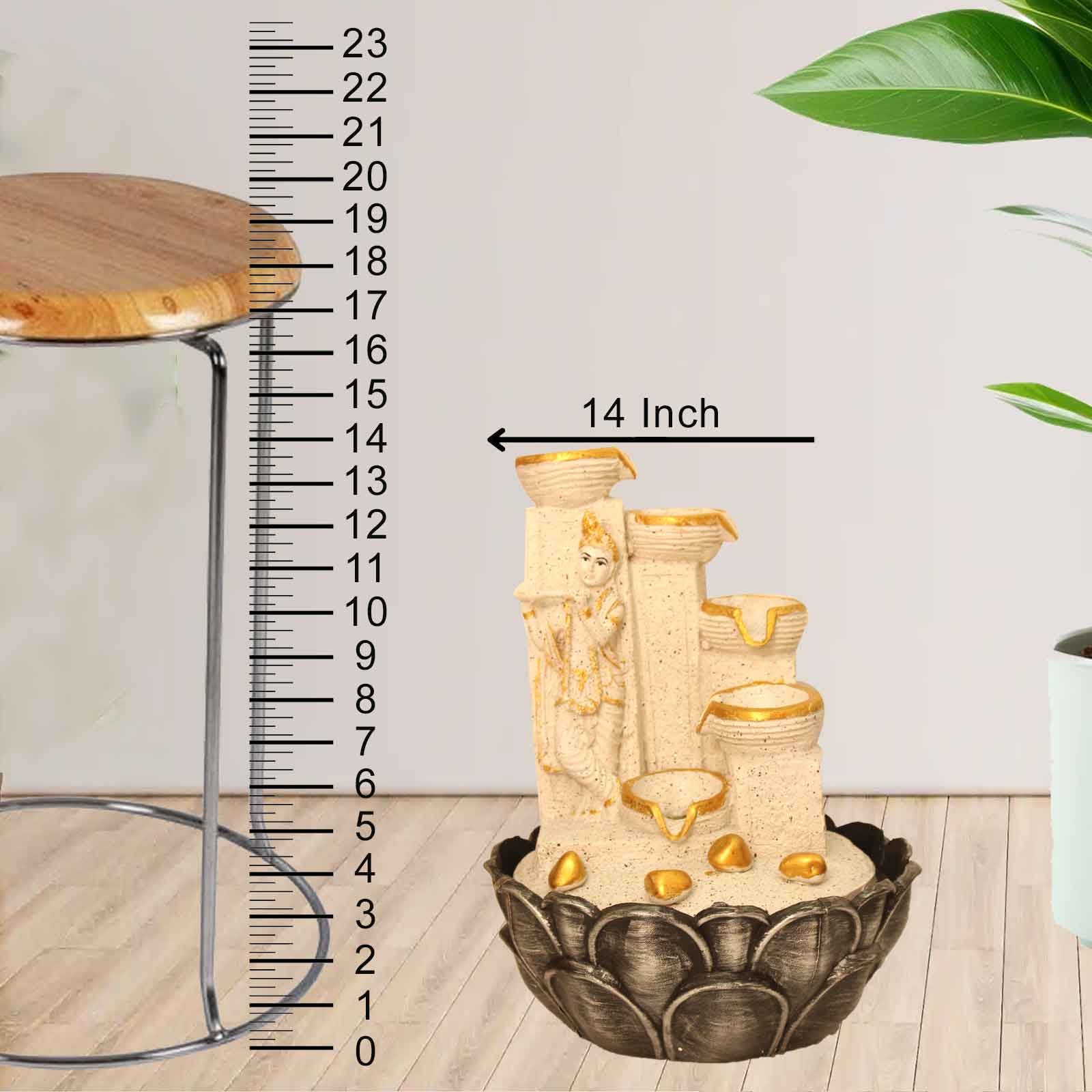 Lord Krishna Home Decor Showpiece fountain for home With Led Light - sandstone Finish 36 cm G57GX0041WGDMX