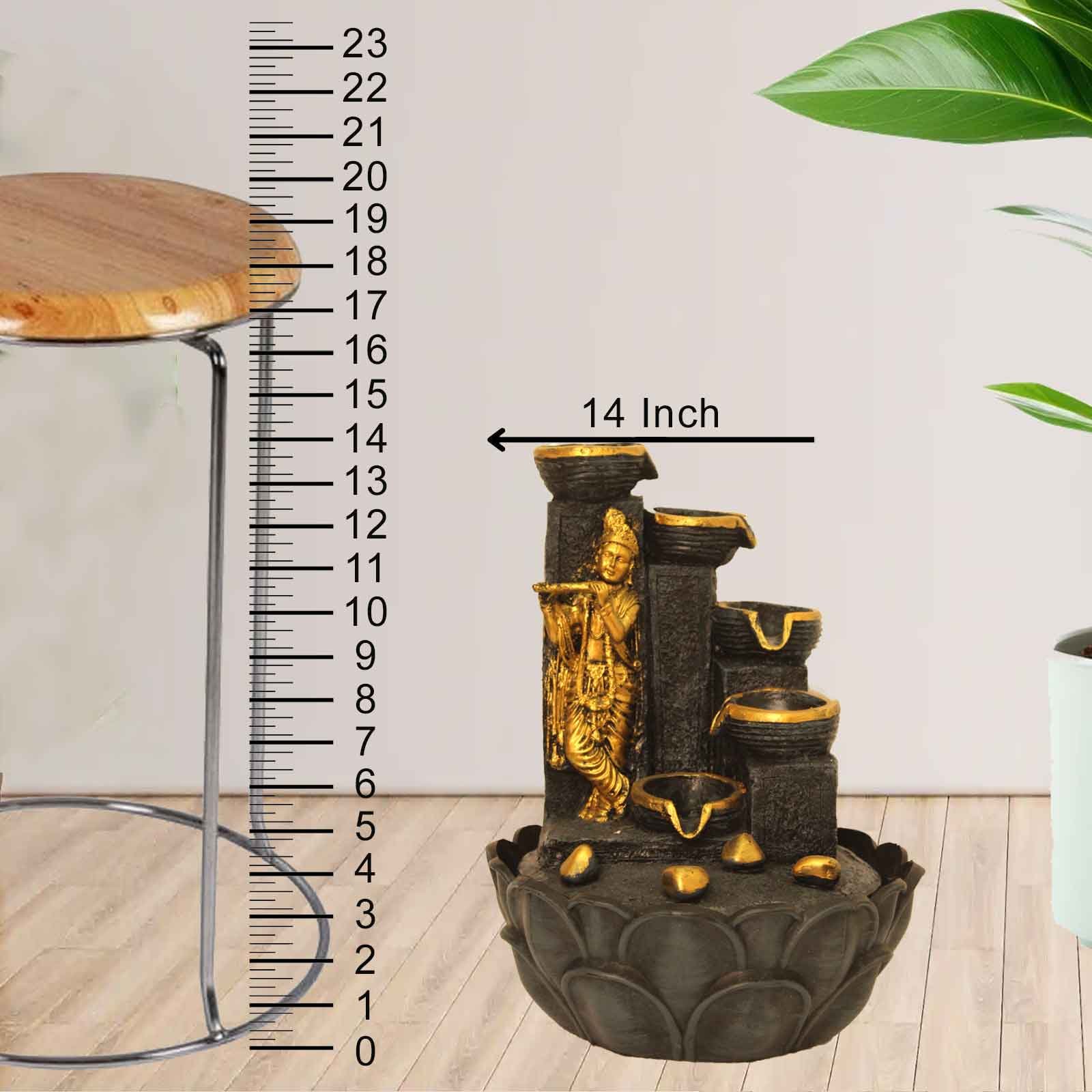 Lord Krishna Home Decor Showpiece indoor fountain With Led Light - Metalic Antique Finish 36 cm G57GX0041FGAMX