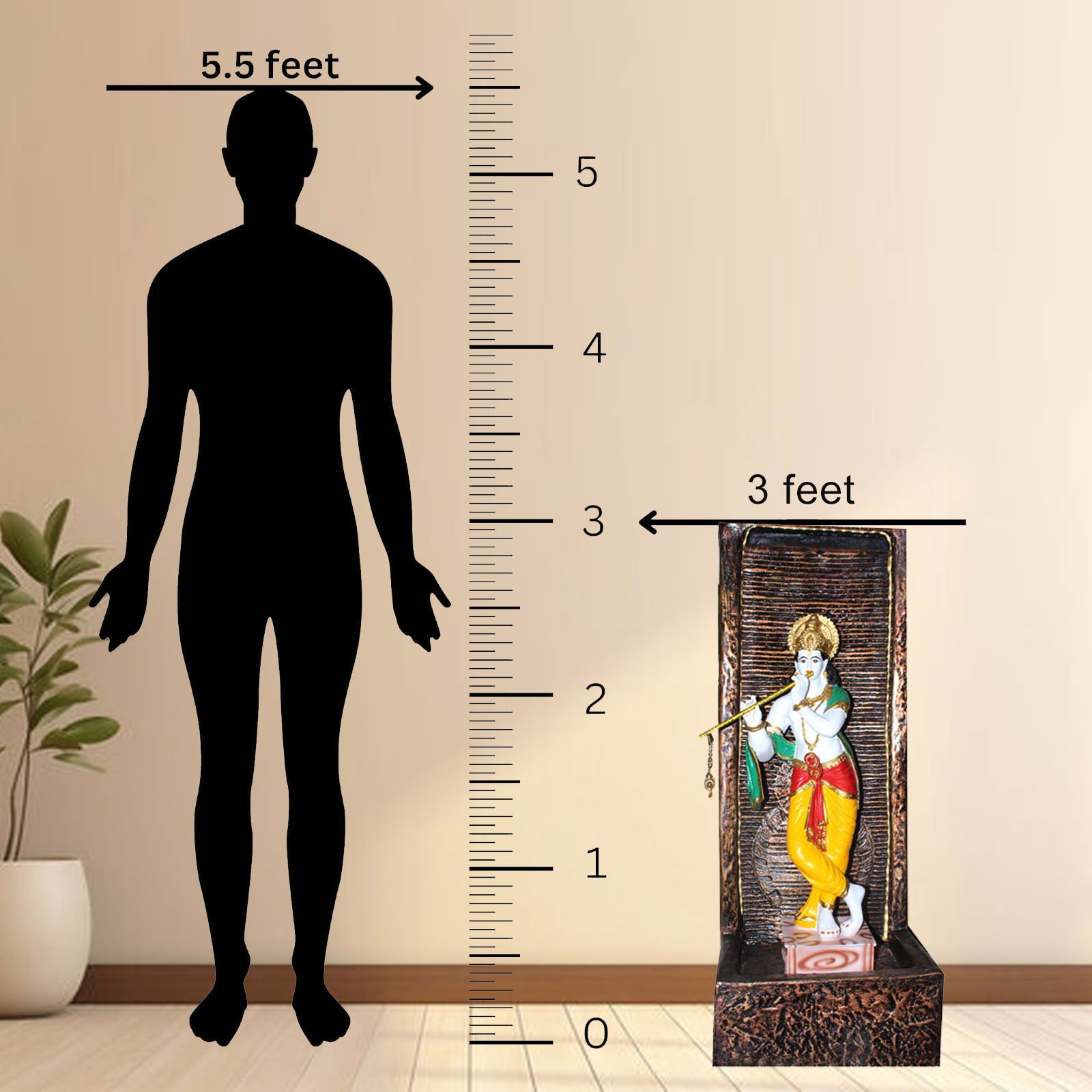 Lord Krishna indoor outdoor FRP Fiber water fountain is a beautiful showpiece for home decor. This indoor water fountain not only looks great but also brings positivity to your space. Sound effect of water fountain helps create a positive and harmonious environment. As a home decorative water fountain, it adds a touch of elegance and peace to your living space. This Lord Krishna also makes for a wonderful decorative gift item for home decoration, ideal for housewarmings or special occasions. An indoor water fountain is best decoration and thoughtful gift. Whether placed in a living room, home, office, showroom, restaurant, hotel and wedding hall, the gentle sound of flowing water can enhance the beauty of area. As a gift, an indoor water fountain is not only visually appealing but also symbolizes harmony and balance. Water fountain is best ideal decorative gift choice as birthday, housewarming, office / shop inauguration, New Year, Wedding, Corporate Diwali gifts or any occasion.