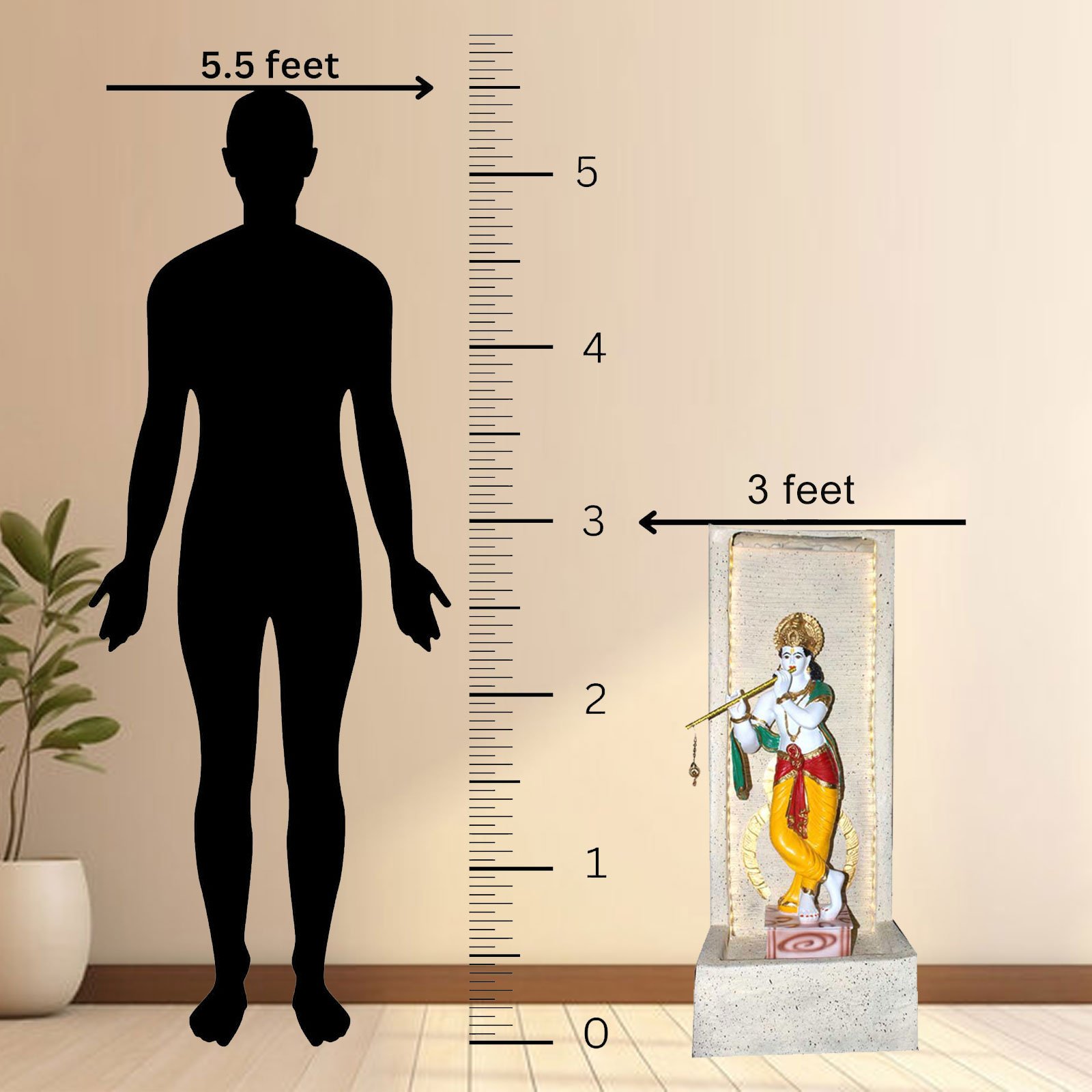 Lord Krishna indoor outdoor FRP Fiber water fountain is a beautiful showpiece for home decor. This indoor water fountain not only looks great but also brings positivity to your space. Sound effect of water fountain helps create a positive and harmonious environment. As a home decorative water fountain, it adds a touch of elegance and peace to your living space. This Lord Krishna also makes for a wonderful decorative gift item for home decoration, ideal for housewarmings or special occasions. An indoor water fountain is best decoration and thoughtful gift. Whether placed in a living room, home, office, showroom, restaurant, hotel and wedding hall, the gentle sound of flowing water can enhance the beauty of area. As a gift, an indoor water fountain is not only visually appealing but also symbolizes harmony and balance. Water fountain is best ideal decorative gift choice as birthday, housewarming, office / shop inauguration, New Year, Wedding, Corporate Diwali gifts or any occasion.
