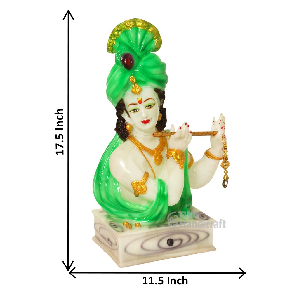 Make in India Lord Krishna Statue Figurine is made by professional artisans using high quality row material. Great look with unfadable color. Showpiece direct from factory at wholesale price This Showpiece is easily cleanable by wet/Dry Cotton Cloth.