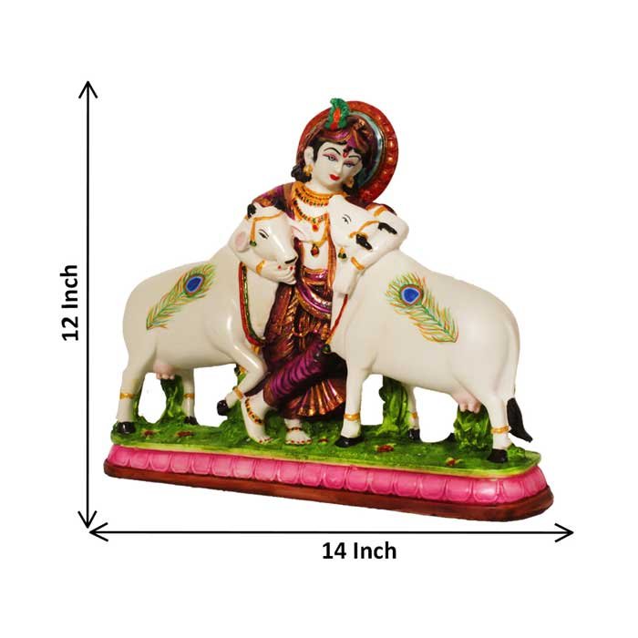 Make in India Lord Krishna With Cow Showpiece is made by professional artisans using high quality row material. Great look with unfadable color. Showpiece direct from factory at wholesale price This Showpiece is easily cleanable by wet/Dry Cotton Cloth.