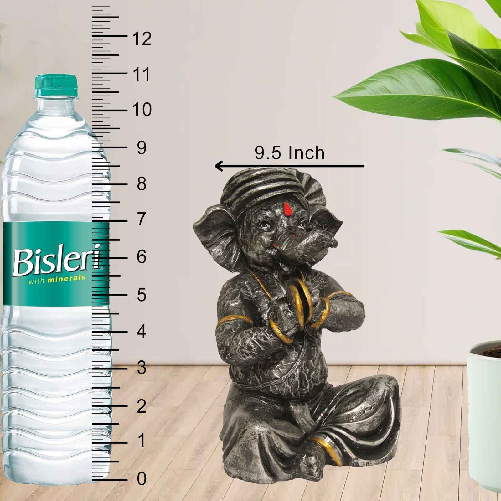 Lord Manjeera Ganesha statue for living room Silver Antique Finish 24 cm G57GX1104SSAGX