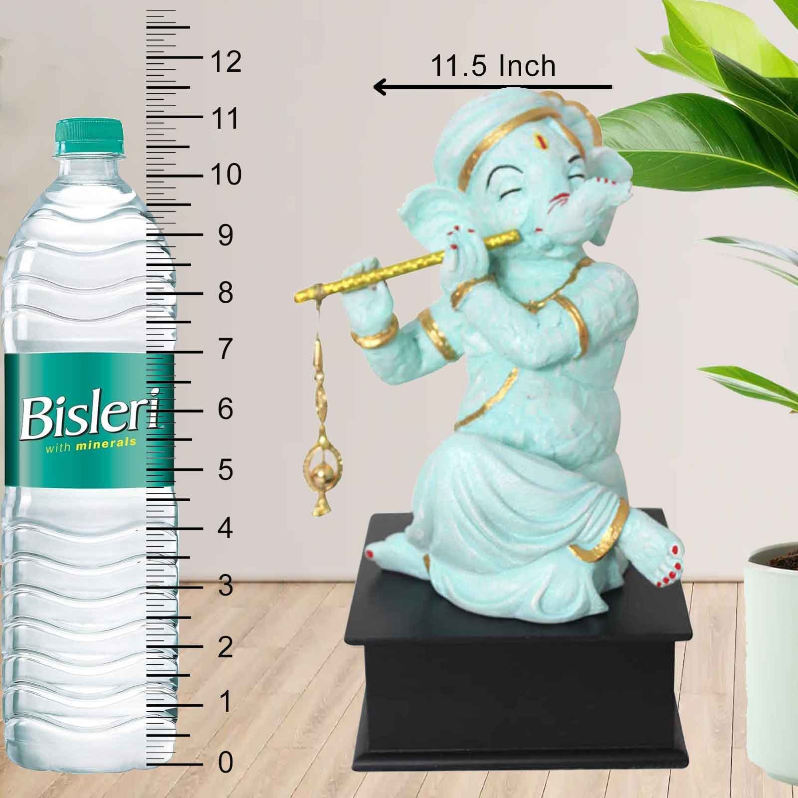 Lord Murli Ganesha murti for home decoration Matte Finish with Wooden Base 29 cm G57GW1106HHLMX