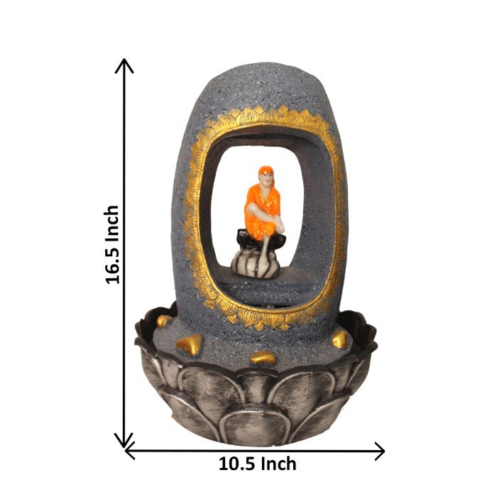 Lord Sai Baba indoor water fountain is a beautiful showpiece for home decor. This indoor water fountain not only looks great but also brings positivity to your space. Sound effect of water fountain helps create a positive and harmonious environment. As a home decorative water fountain, it adds a touch of elegance and peace to your living space. This Lord Sai Baba indoor water fountain also makes for a wonderful decorative gift item for home decoration, ideal for housewarmings or special occasions. An indoor water fountain is best decoration and thoughtful gift. Whether placed in a living room, home, office, showroom, restaurant, hotel and wedding hall, the gentle sound of flowing water can enhance the beauty of area. As a gift, an indoor water fountain is not only visually appealing but also symbolizes harmony and balance. Water fountain is best ideal decorative gift choice as birthday, housewarming, office / shop inauguration, New Year, Wedding, Corporate Diwali gifts or any occasion.