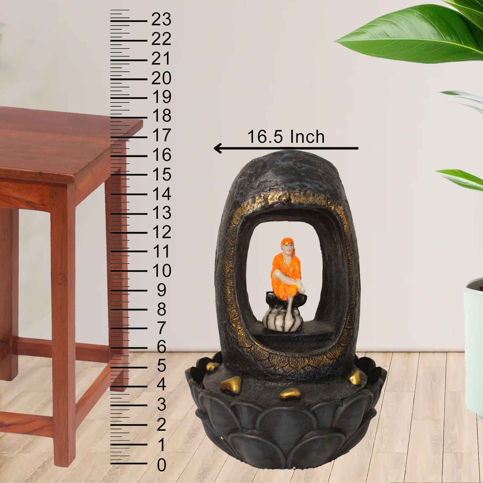 Lord Sai Baba indoor water fountain is a beautiful showpiece for home decor. This indoor water fountain not only looks great but also brings positivity to your space. Sound effect of water fountain helps create a positive and harmonious environment. As a home decorative water fountain, it adds a touch of elegance and peace to your living space. This Lord Sai Baba indoor water fountain also makes for a wonderful decorative gift item for home decoration, ideal for housewarmings or special occasions. An indoor water fountain is best decoration and thoughtful gift. Whether placed in a living room, home, office, showroom, restaurant, hotel and wedding hall, the gentle sound of flowing water can enhance the beauty of area. As a gift, an indoor water fountain is not only visually appealing but also symbolizes harmony and balance. Water fountain is best ideal decorative gift choice as birthday, housewarming, office / shop inauguration, New Year, Wedding, Corporate Diwali gifts or any occasion.