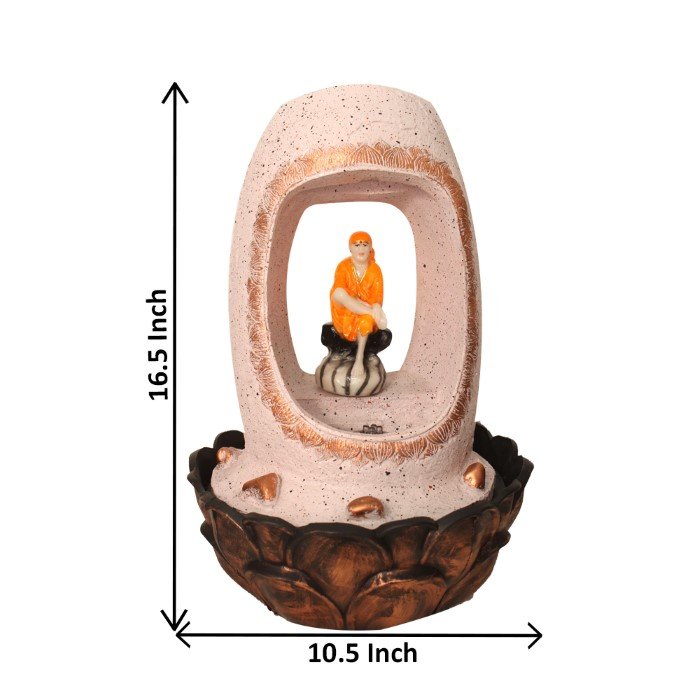 Lord Sai Baba indoor water fountain is a beautiful showpiece for home decor. This indoor water fountain not only looks great but also brings positivity to your space. Sound effect of water fountain helps create a positive and harmonious environment. As a home decorative water fountain, it adds a touch of elegance and peace to your living space. This Lord Sai Baba indoor water fountain also makes for a wonderful decorative gift item for home decoration, ideal for housewarmings or special occasions. An indoor water fountain is best decoration and thoughtful gift. Whether placed in a living room, home, office, showroom, restaurant, hotel and wedding hall, the gentle sound of flowing water can enhance the beauty of area. As a gift, an indoor water fountain is not only visually appealing but also symbolizes harmony and balance. Water fountain is best ideal decorative gift choice as birthday, housewarming, office / shop inauguration, New Year, Wedding, Corporate Diwali gifts or any occasion.