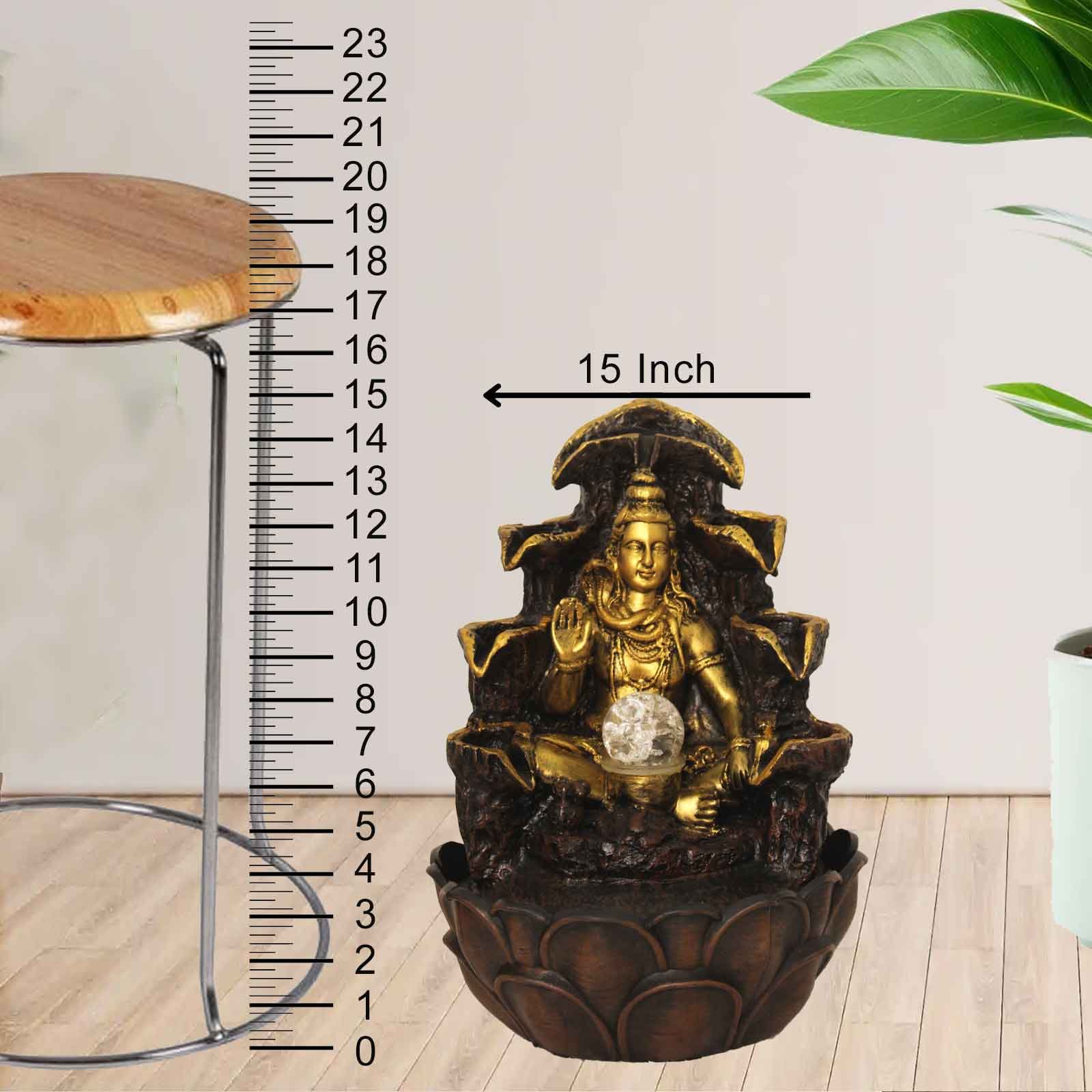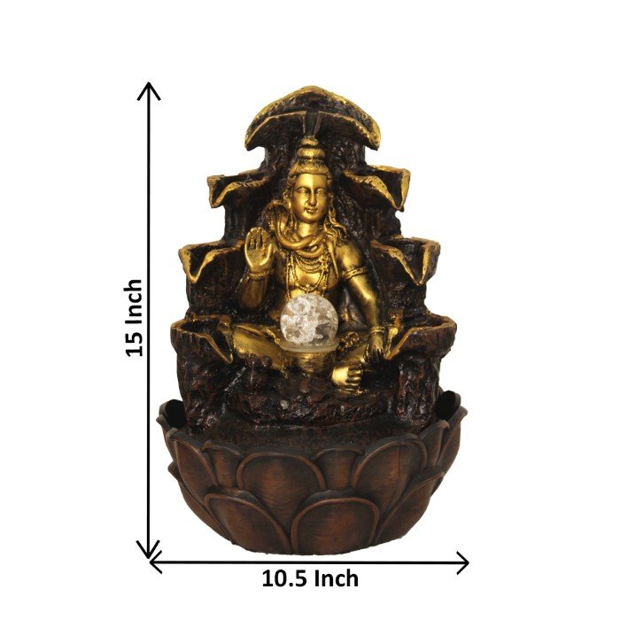 God Shiv indoor waterfall for home With Led Light & Crystal Ball - Metalic Antiq...