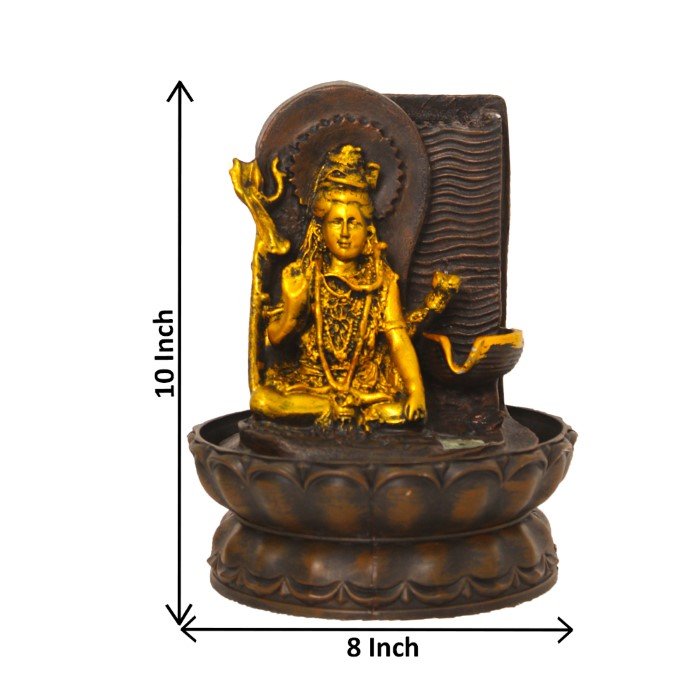 God Shiv indoor water fountain is a beautiful showpiece for home decor. This indoor water fountain not only looks great but also brings positivity to your space. Sound effect of water fountain helps create a positive and harmonious environment. As a home decorative water fountain, it adds a touch of elegance and peace to your living space. This God Shiva also makes for a wonderful decorative gift item for home decoration, ideal for housewarmings or special occasions. An indoor water fountain is best decoration and thoughtful gift. Whether placed in a living room, home, office, showroom, restaurant, hotel and wedding hall, the gentle sound of flowing water can enhance the beauty of area. As a gift, an indoor water fountain is not only visually appealing but also symbolizes harmony and balance. Water fountain is best ideal decorative gift choice as birthday, housewarming, office / shop inauguration, New Year, Wedding, Corporate Diwali gifts or any occasion.