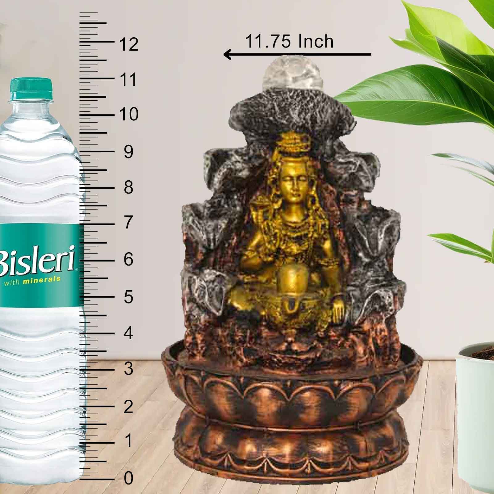 God Shiv indoor waterfall for home With Led Light & Crystal Ball - Metalic Antiq...
