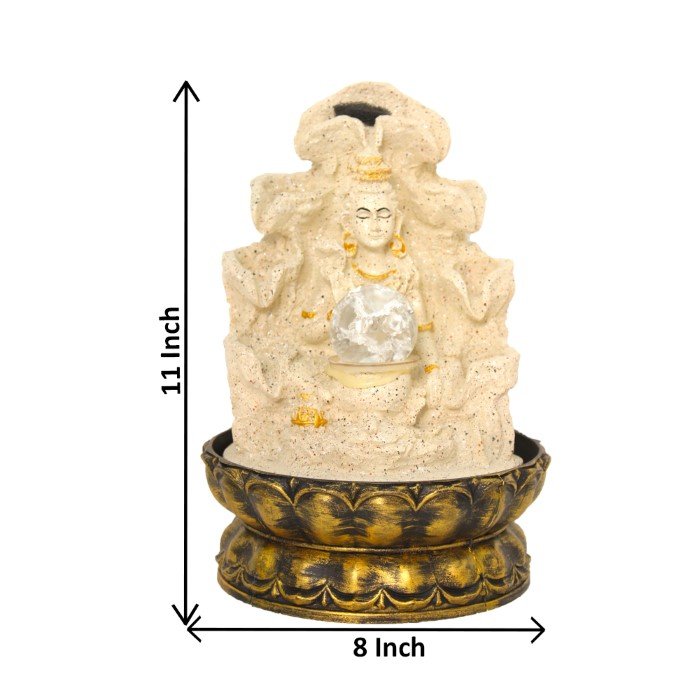 Lord Shiva indoor water fountain with crystal ball is a beautiful showpiece for home decor. This indoor water fountain not only looks great but also brings positivity to your space. Sound effect of water fountain helps create a positive and harmonious environment. As a home decorative water fountain, it adds a touch of elegance and peace to your living space. This Lord Shiva also makes for a wonderful decorative gift item for home decoration, ideal for housewarmings or special occasions. An indoor water fountain is best decoration and thoughtful gift. Whether placed in a living room, home, office, showroom, restaurant, hotel and wedding hall, the gentle sound of flowing water can enhance the beauty of area. As a gift, an indoor water fountain is not only visually appealing but also symbolizes harmony and balance. Water fountain is best ideal decorative gift choice as birthday, housewarming, office / shop inauguration, New Year, Wedding, Corporate Diwali gifts or any occasion.