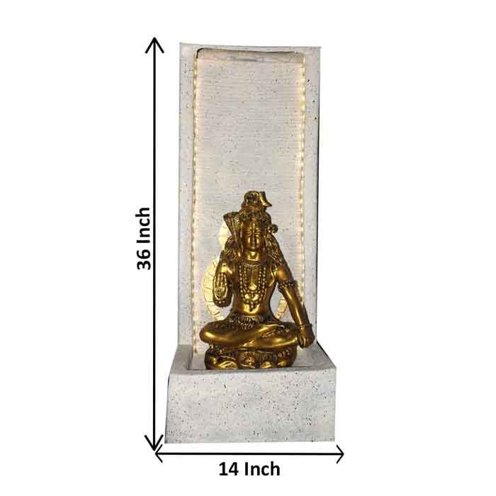 Lord Mahadev Shiva indoor outdoor FRP Fiber water fountain is a best showpiece for home decor. This indoor water fountain not only looks great but also brings positivity to your space. Sound effect of water fountain helps create a positive and harmonious environment. As a home decorative water fountain, it adds a touch of elegance to your living space. This Lord Mahadev Shiva also makes for a wonderful decorative gift item for home decoration, ideal for housewarmings or special occasions. An indoor water fountain is best decoration and thoughtful gift. Whether placed in a living room, home, office, showroom, restaurant, hotel and wedding hall, the gentle sound of flowing water can enhance the beauty of area. As a gift, an indoor water fountain is not only visually appealing but also symbolizes harmony and balance. Water fountain is best ideal decorative gift choice as birthday, housewarming, office / shop inauguration, New Year, Wedding, Corporate Diwali gifts or any occasion.