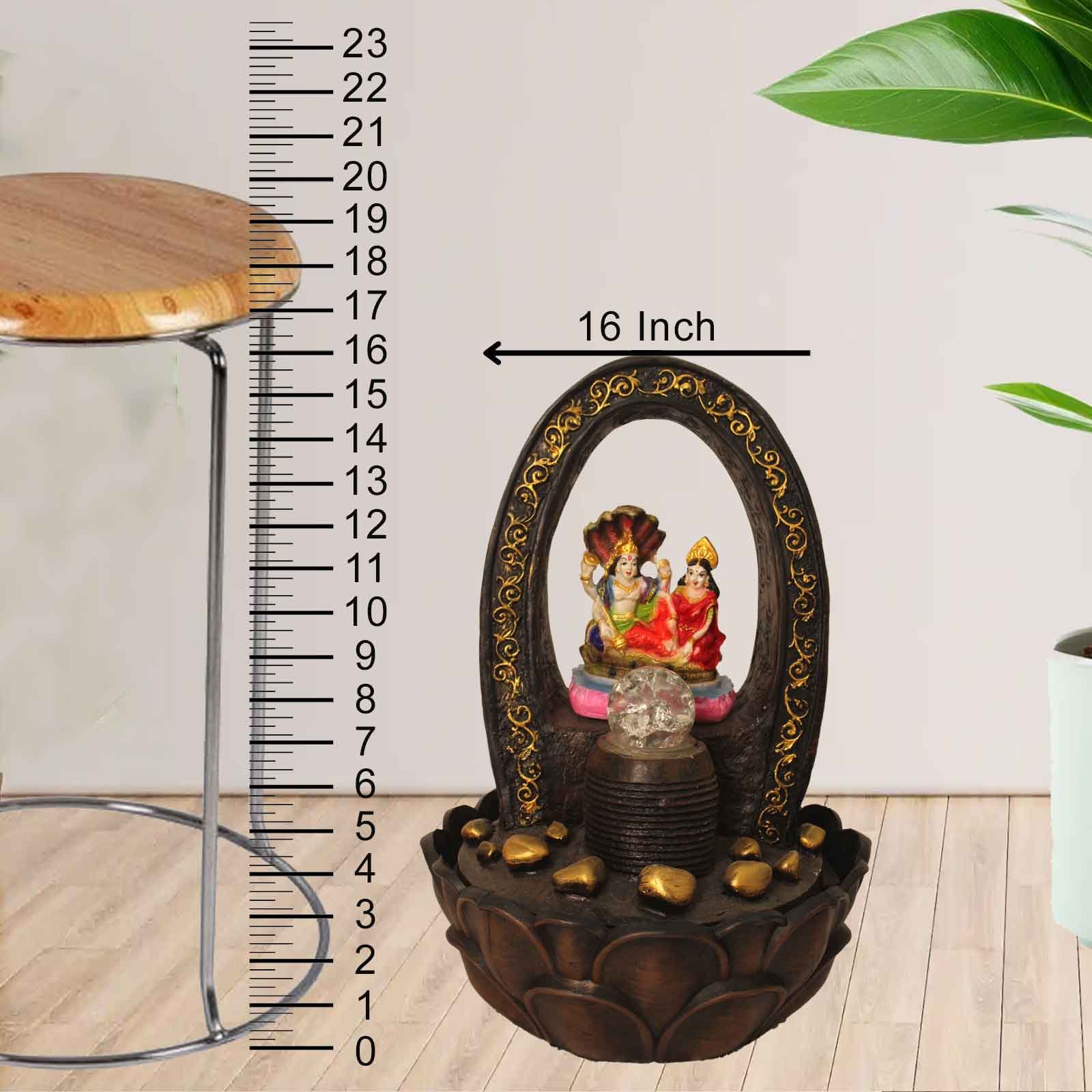 Lord Vishnu Laxmi desktop fountain Waterfall With Led Light & Crystal Ball - Metalic Antique Finish 41 cm G57GX0209AGAMX-67X0040M