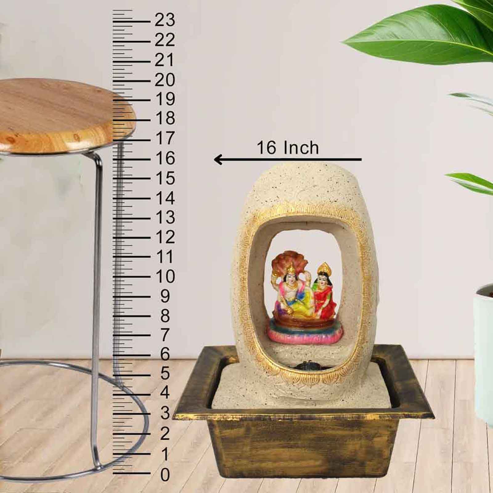 Lord Vishnu Laxmi indoor water fountain is a beautiful showpiece for home decor. This indoor water fountain not only looks great but also brings positivity to your space. Sound effect of water fountain helps create a positive and harmonious environment. As a home decorative water fountain, it adds a touch of elegance and peace to your living space. This Lord Vishnu Laxmi also makes for a wonderful decorative gift item for home decoration, ideal for housewarmings or special occasions. An indoor water fountain is best decoration and thoughtful gift. Whether placed in a living room, home, office, showroom, restaurant, hotel and wedding hall, the gentle sound of flowing water can enhance the beauty of area. As a gift, an indoor water fountain is not only visually appealing but also symbolizes harmony and balance. Water fountain is best ideal decorative gift choice as birthday, housewarming, office / shop inauguration, New Year, Wedding, Corporate Diwali gifts or any occasion.