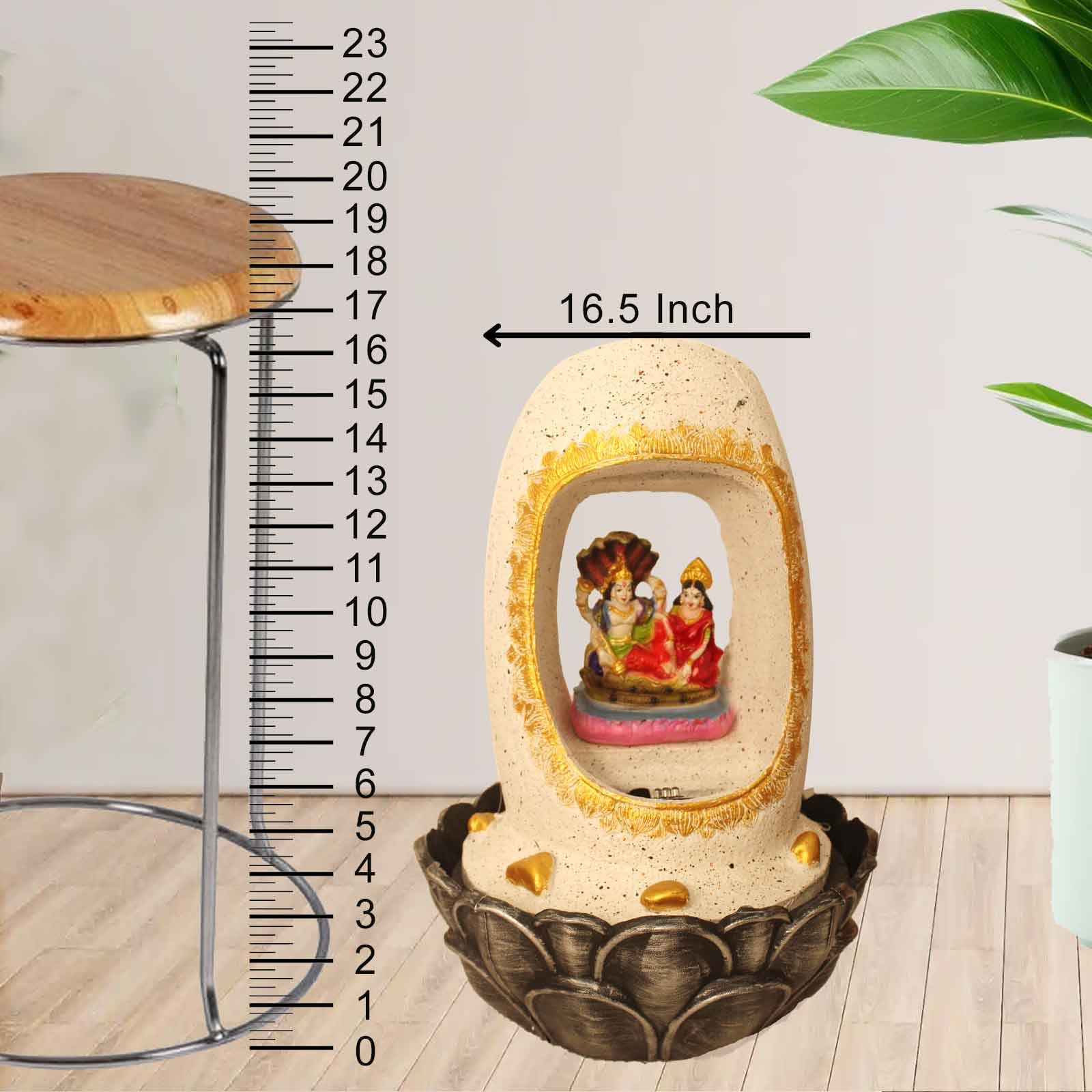 Lord Vishnu Laxmi indoor water fountain is a beautiful showpiece for home decor. This indoor water fountain not only looks great but also brings positivity to your space. Sound effect of water fountain helps create a positive and harmonious environment. As a home decorative water fountain, it adds a touch of elegance and peace to your living space. This Lord Vishnu Laxmi indoor water fountain also makes for a wonderful decorative gift item for home decoration, ideal for housewarmings or special occasions. An indoor water fountain is best decoration and thoughtful gift. Whether placed in a living room, home, office, showroom, restaurant, hotel and wedding hall, the gentle sound of flowing water can enhance the beauty of area. As a gift, an indoor water fountain is not only visually appealing but also symbolizes harmony and balance. Water fountain is best ideal decorative gift choice as birthday, housewarming, office / shop inauguration, New Year, Wedding, Corporate Diwali gifts or any occasion.