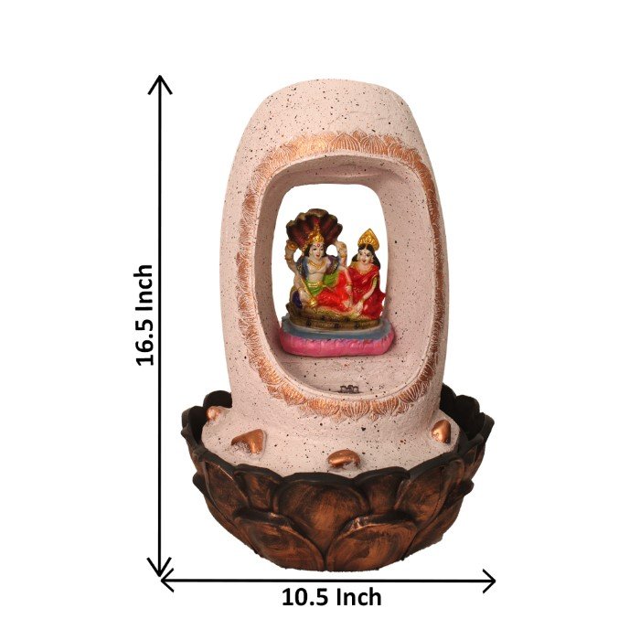 Lord Vishnu Laxmi indoor water fountain is a beautiful showpiece for home decor. This indoor water fountain not only looks great but also brings positivity to your space. Sound effect of water fountain helps create a positive and harmonious environment. As a home decorative water fountain, it adds a touch of elegance and peace to your living space. This Lord Vishnu Laxmi indoor water fountain also makes for a wonderful decorative gift item for home decoration, ideal for housewarmings or special occasions. An indoor water fountain is best decoration and thoughtful gift. Whether placed in a living room, home, office, showroom, restaurant, hotel and wedding hall, the gentle sound of flowing water can enhance the beauty of area. As a gift, an indoor water fountain is not only visually appealing but also symbolizes harmony and balance. Water fountain is best ideal decorative gift choice as birthday, housewarming, office / shop inauguration, New Year, Wedding, Corporate Diwali gifts or any occasion.