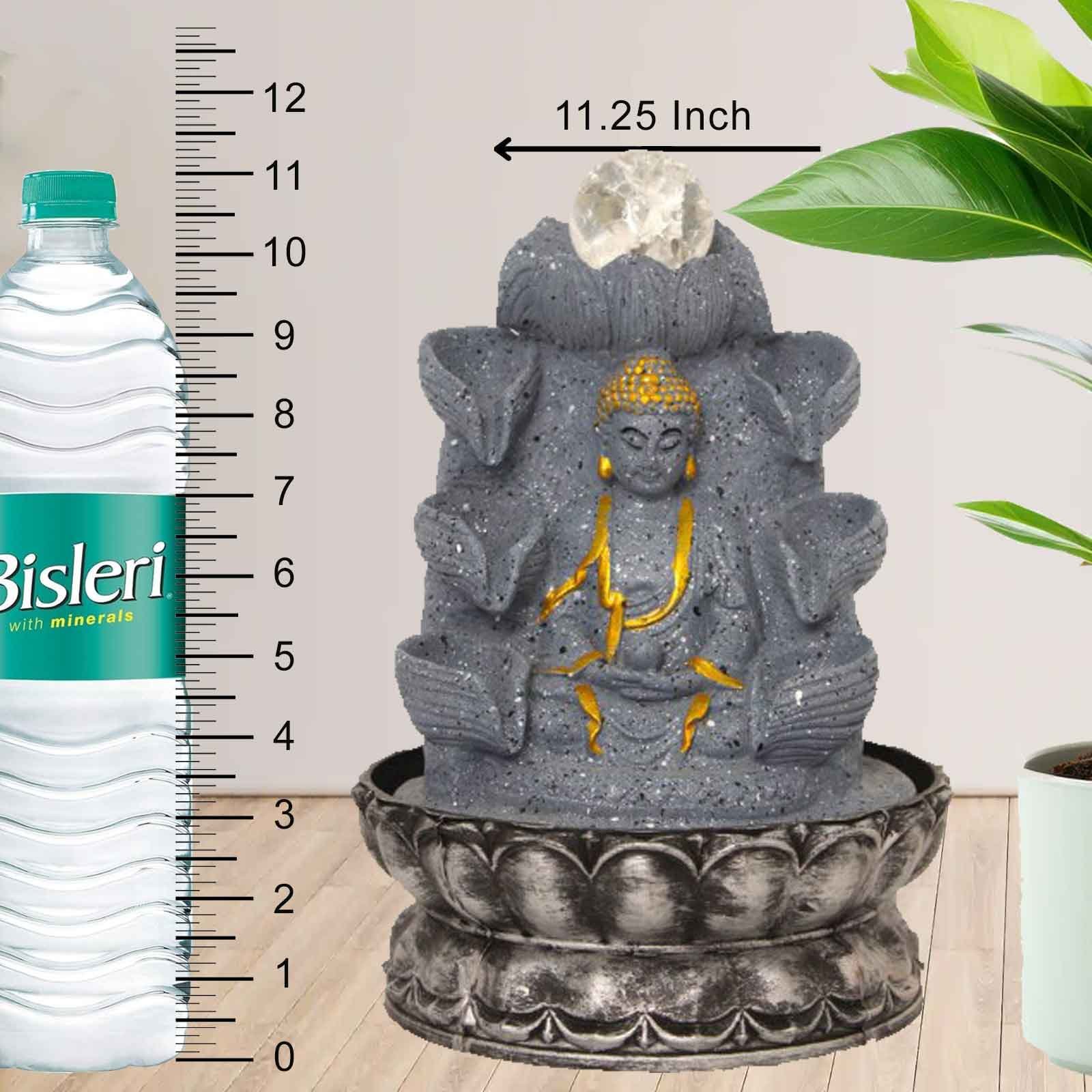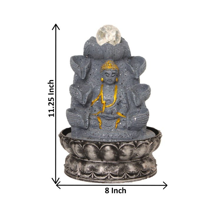 Lord Gautam Buddha house water fountain With Led Light - Metalic Antique Finish ...