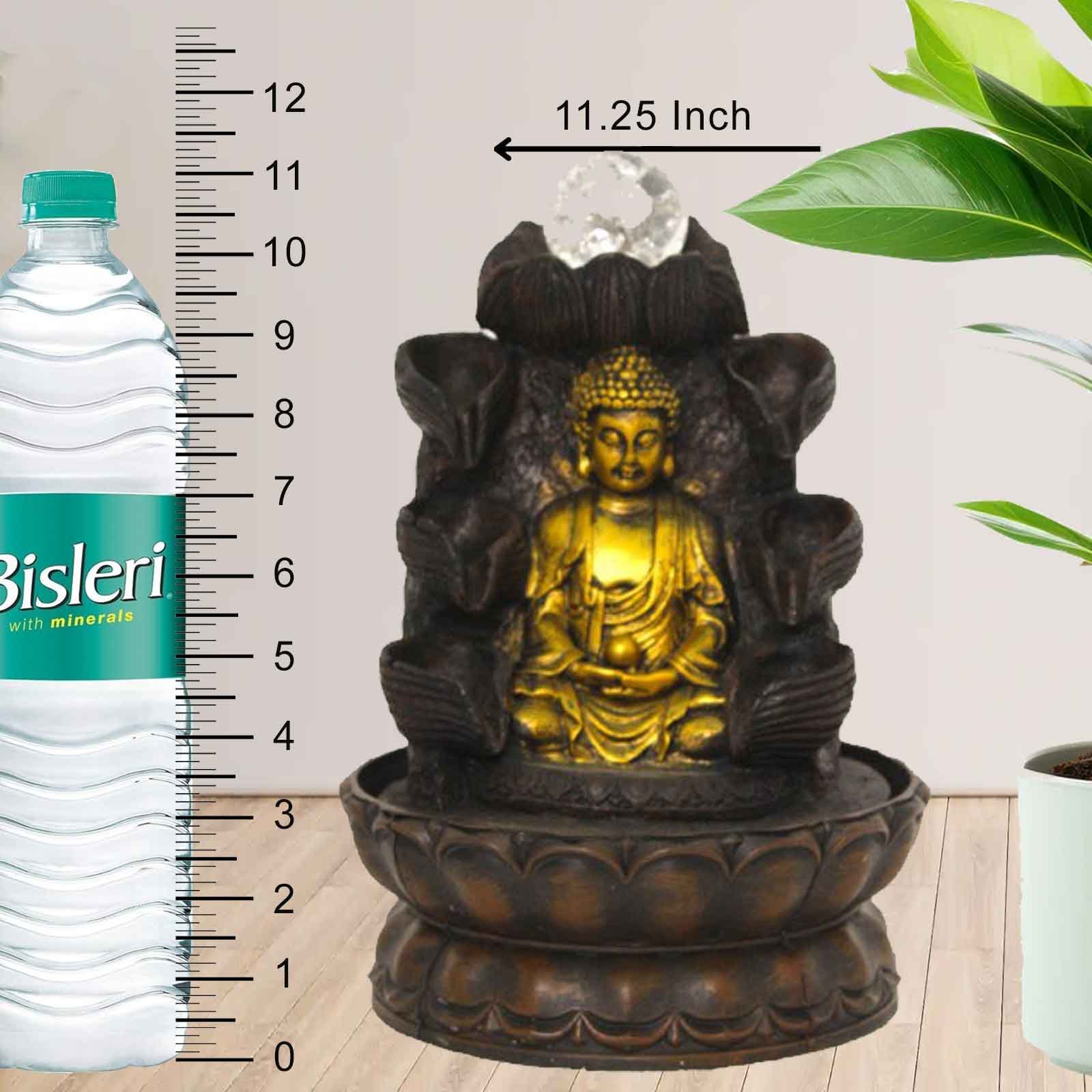 Handicraft Buddha fountain for living room With Led Light - Metalic Antique Fini...