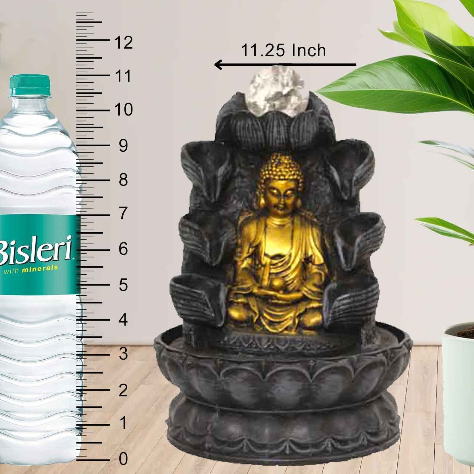 Lotus Buddha indoor fountain With Led Light & Crystal Ball - Metalic Antique Finish 27 cm G57GX0456FGAMX