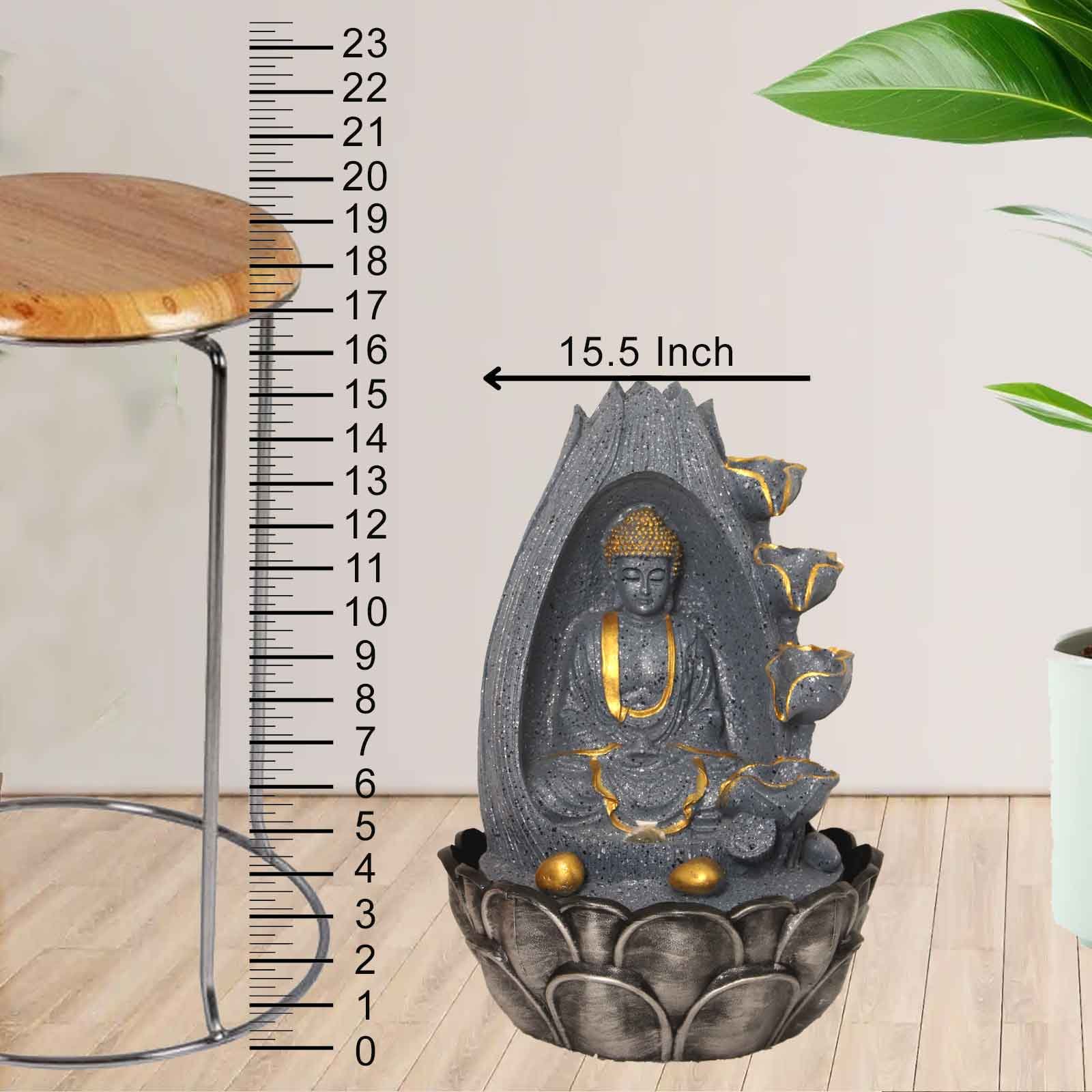 Pranam Buddha water fountain indoor vastu Large Size With Led Light - Metalic An...